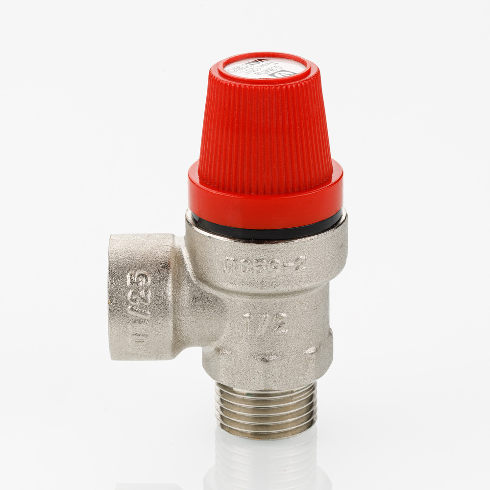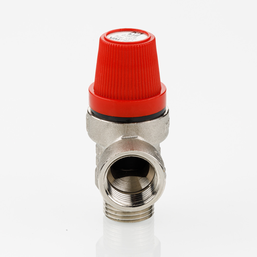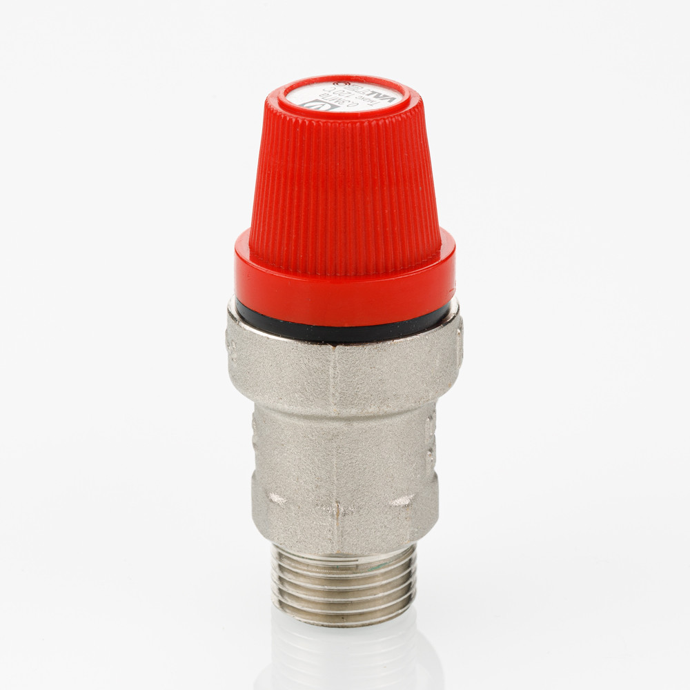 (VT.496.N) Клапан предохранительный нерегулируемый, c фиксированной заводской настройкой. Для удобства пользования введена цветовая маркировка: черный колпачок – 1,5 бара, красный – 3, желтый – 6 бар.