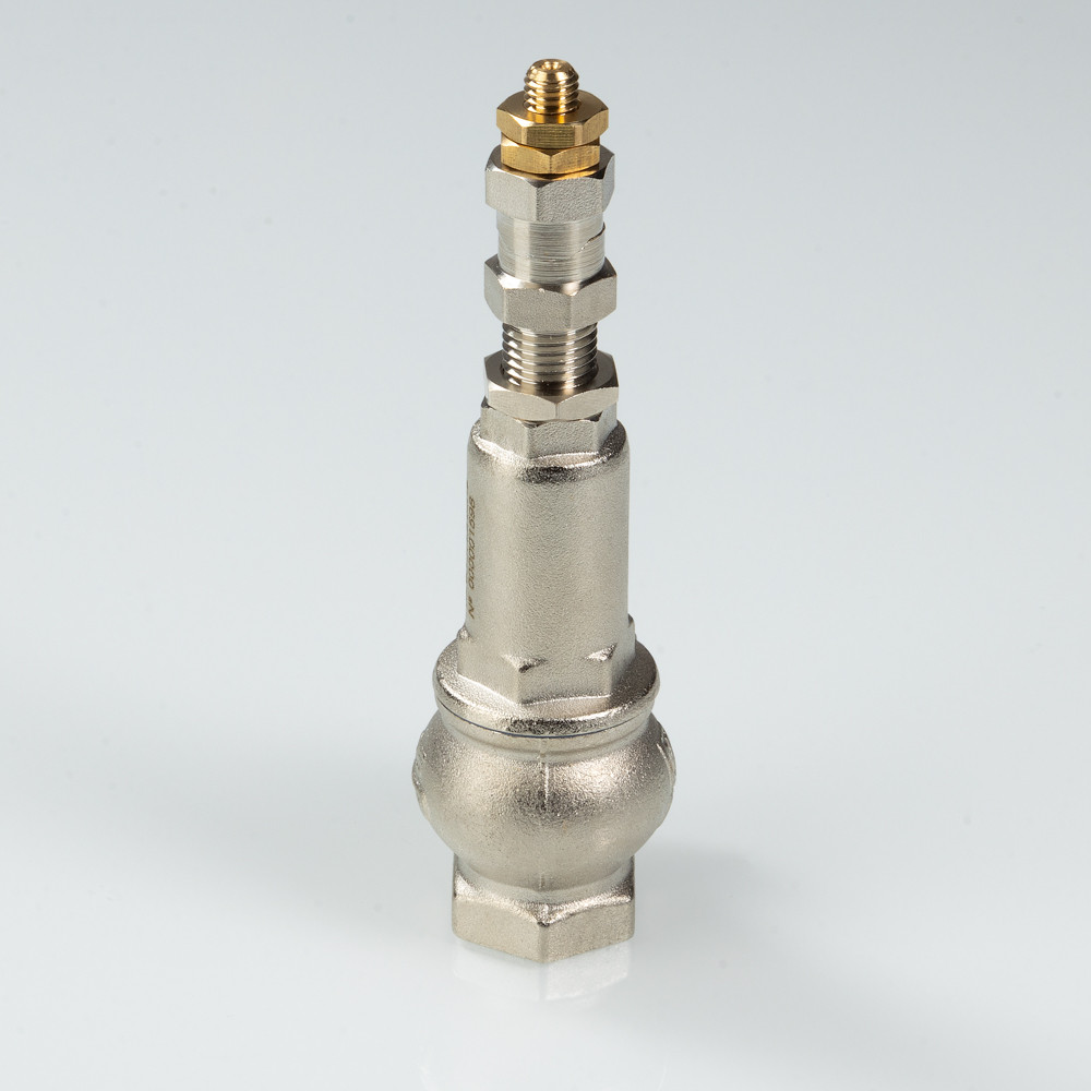 (VT.1831.N) Предназначен для установки на паровых и водогрейных котлах, сосудах под давлением, трубопроводах, где в качестве рабочей среды используются вода, водяной пар, раствор этилен- и пропиленгликоля, воздух, природный газ, сжиженный углеводородный газ и другие жидкости и газы, нейтральные по отношению к латуни и тефлону. Температура рабочей среды – до 150 °С. Предусмотрена возможность настройки в диапазоне 1–12 бар и ручного открытия клапана для проверки работоспособности. Давление заводской настройки – 3 бара. Диапазон условных диаметров – от 1/2 до 2". Минимальный ресурс – 5 тыс. циклов.