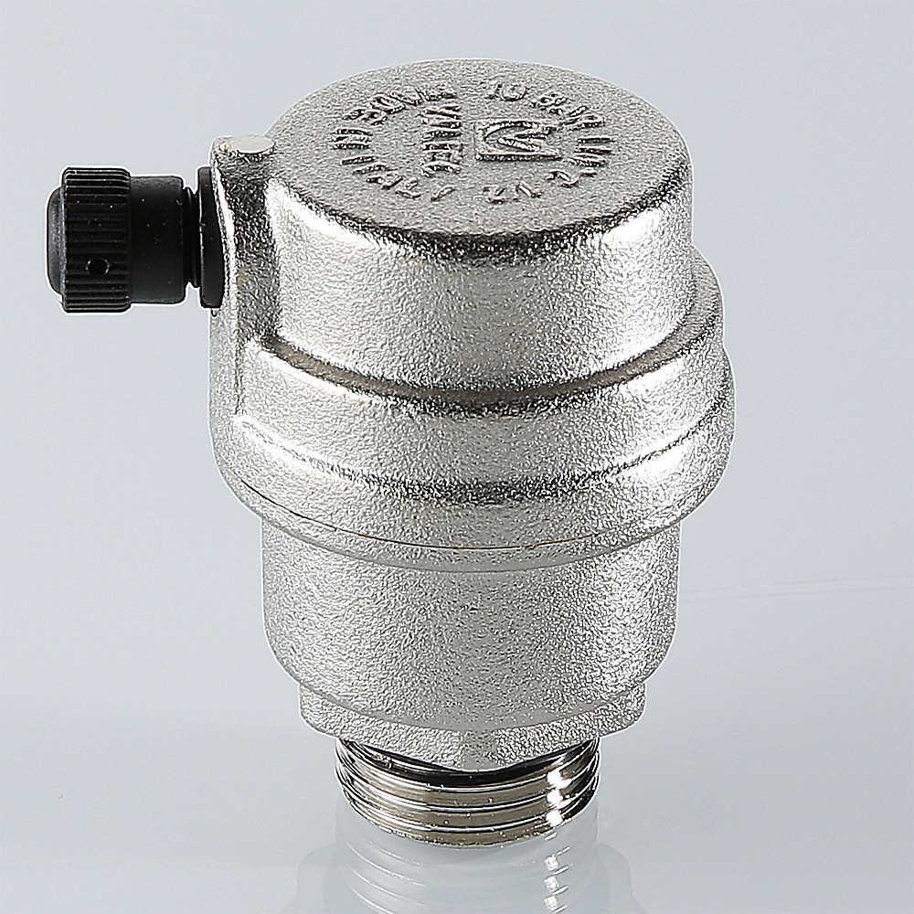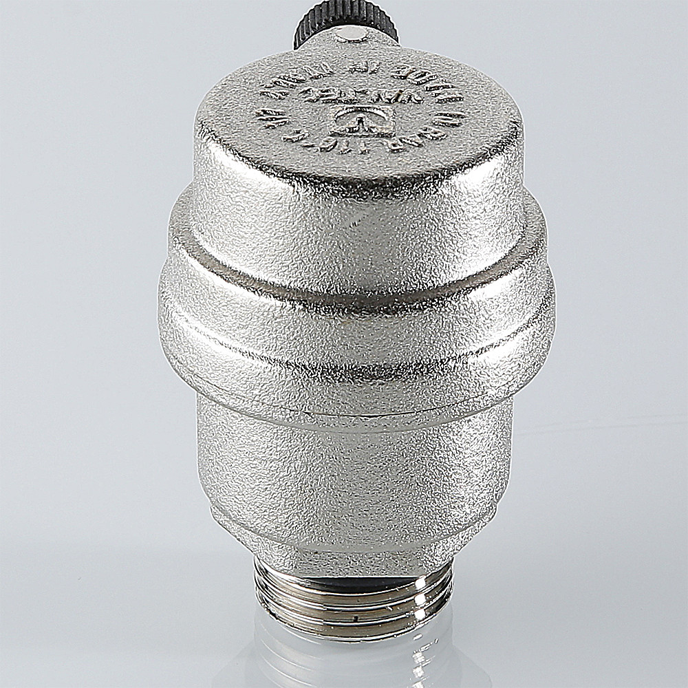 (VT.502.NH) Автоматический воздухоотводчик поплавкового типа с пружинным золотником. Может использоваться на трубопроводах, транспортирующих воду, этилен- и пропиленгликолевый незамерзающий теплоноситель, другие жидкости, неагрессивные к материалам изделия. Ремонтопригодный. Детали корпуса воздухоотводчика выполнены из качественной сантехнической латуни, никелированы. Материал уплотняющей прокладки – эластомер EPDM, поплавка – полипропилен, пружины – нержавеющая сталь AISI 306, держателя золотника и жиклера – нейлон. Воздухоотводчик допущен к применению в системах с рабочей температурой до 110 °С и давлением до 10 бар.