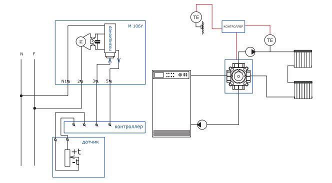 Схема подключения привода VT.M106.R с аналоговым управлением от контроллера