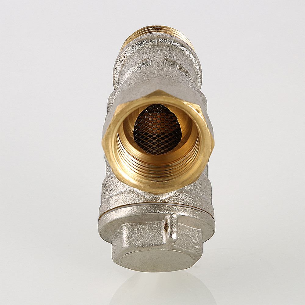 (VT.191.N) Фильтр механической очистки косого типа. Может устанавливаться в горизонтальном и вертикальном (движение потока – сверху–вниз) положении. Корпус и пробка изготовлены горячим прессованием из латуни марки CW617N (европейский стандарт EN 12165) и никелированы. Между ними предусмотрена тефлоновая уплотнительная прокладка. Пробка оснащена отверстием для пломбировки. Размер ячеек сетки фильтрующего элемента – 500 мкм, максимальное рабочее давление – 20 бар. Максимальная рабочая температура фильтруемой среды – 150 °C. Условный диаметр – 1/2". Резьба присоединения – внутренняя/наружная.