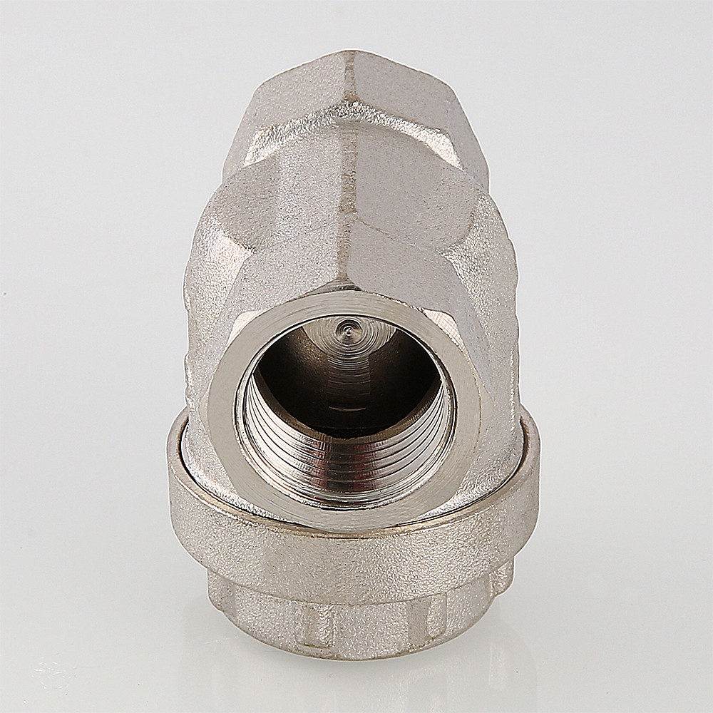 (VT.388.N) Фильтр механической очистки прямого типа (линейный). Устанавливается в горизонтальном положении, пробкой вниз. Корпус и пробка фильтра выполнены из латуни марки CW617N (европейский стандарт EN 12165), никелированы. Между ними имеется уплотнительное кольцо из EPDM. Пробка оснащена отверстием для пломбировки. Размер ячеек сетки фильтрующего элемента из нержавеющей стали – 300 мкм, максимальное рабочее давление – 16 бар. Максимальная рабочая температура фильтруемой среды – 110 °C. Резьба присоединения – внутренняя/внутренняя.
