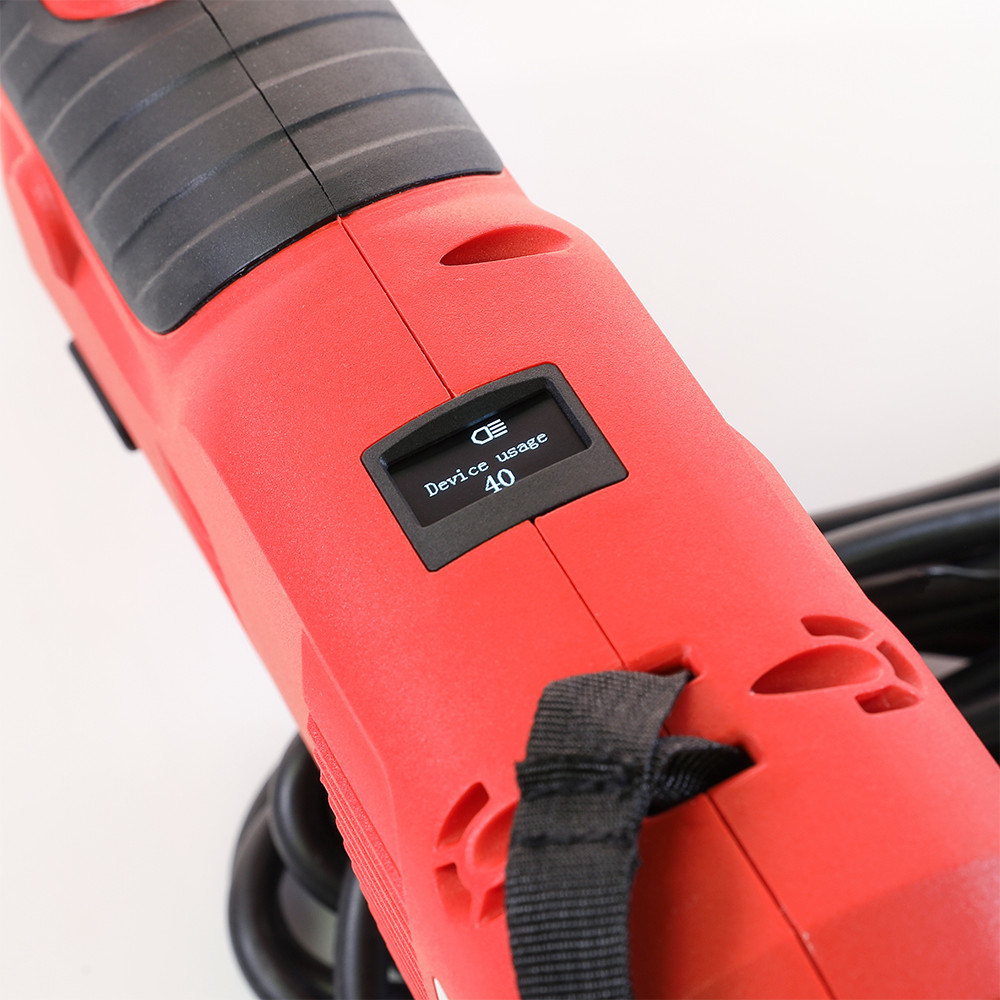 Инструмент оснащен электрогидравлическим приводом мощностью 490 Вт, работающим от источника переменного тока напряжением 220–240 В и создающим давление опрессовки в 3,2 т. Предусмотрены автоматический реверс, звуковая и световая сигнализация об ошибках в работе, функции самодиагностики при включении инструмента в сеть, световая сигнализации о приближении срока/необходимости проведения технического обслуживания (периодичность – 30 тыс. циклов). Вес инструмента – 4,1 кг.