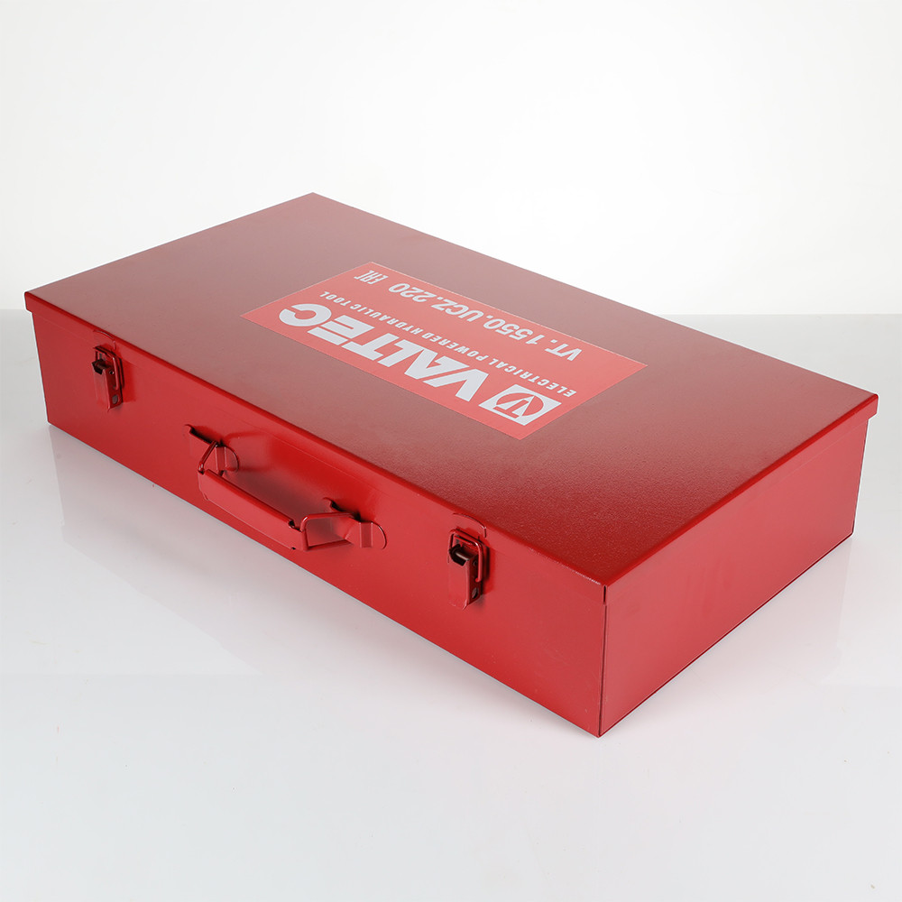 Пресс-инструмент электрический VALTEC UCZ поставляется в удобном металлическом кейсе с гнездами для насадок.