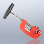 (VTi.701.0) Труборез VTi.701 предназначен для быстрой резки труб из обычной и нержавеющей стали диаметром от 10 до 42 мм. Конструкция резака обеспечивает оптимальную передачу усилия на трубу. Материал режущего диска (ролик отрезной для стальных труб) – закаленная высоколегированная сталь. Широкие ролики гарантируют надежный ход диска по трубе. Используя резак для стальных труб VTi.701, можно непосредственно после резки приступать к нарезанию резьбы, поскольку грат не образуется.