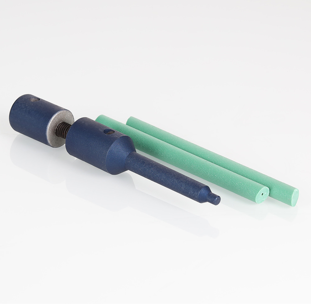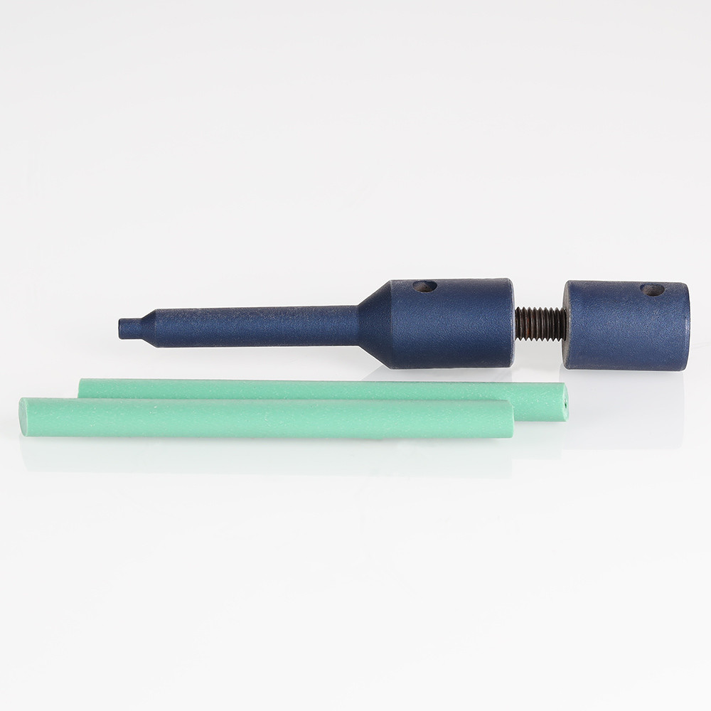 Внутренний диаметр ремонтного карандаша – 9 мм, размер его кончика – 4,5 мм. При необходимости вместо ПП-заготовки (стержень диаметром 9, длиной 100 мм) можно использовать полоску распущенной вдоль полипропиленовой трубы.