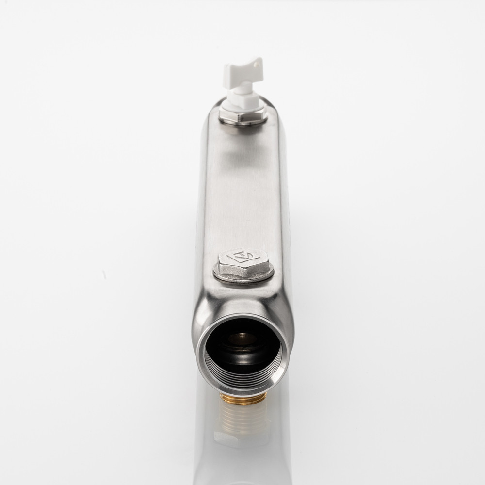 - Коллектор из нержавеющей стали с межосевым расстоянием выходов 100 мм