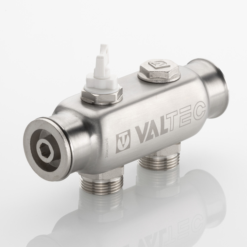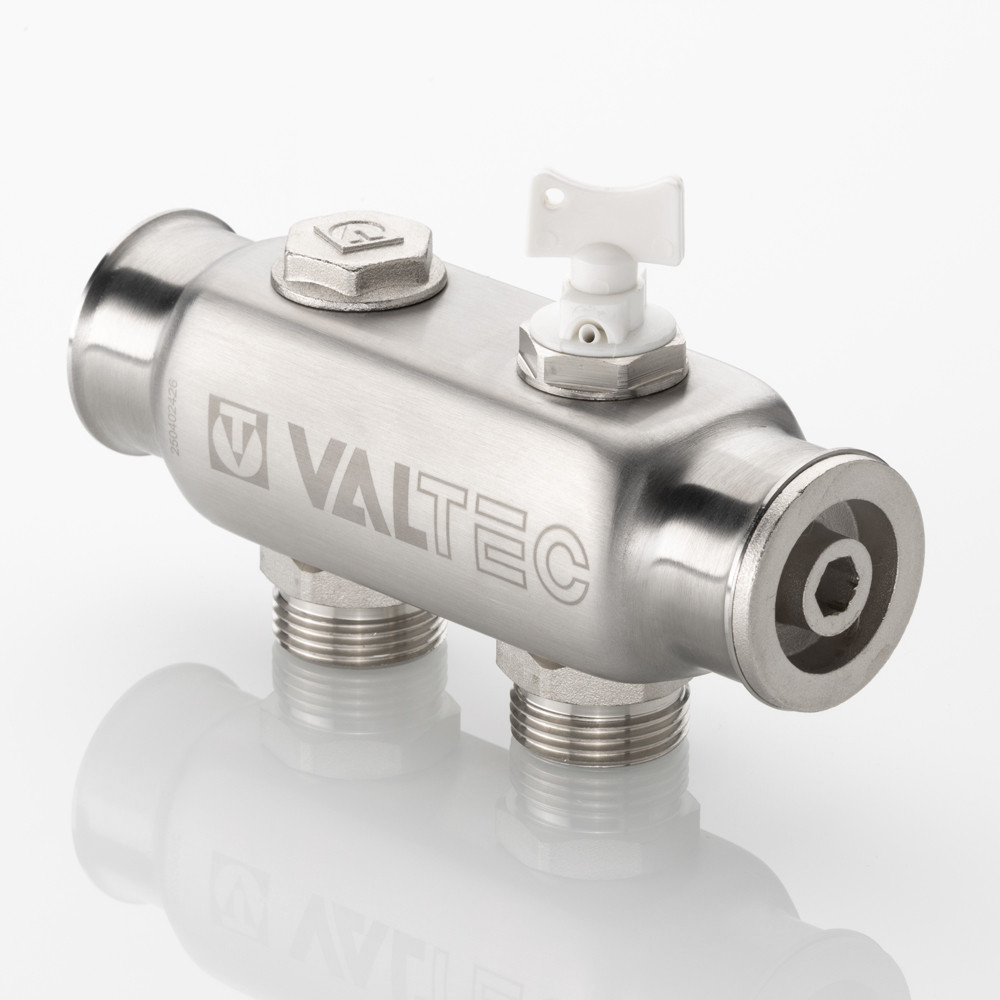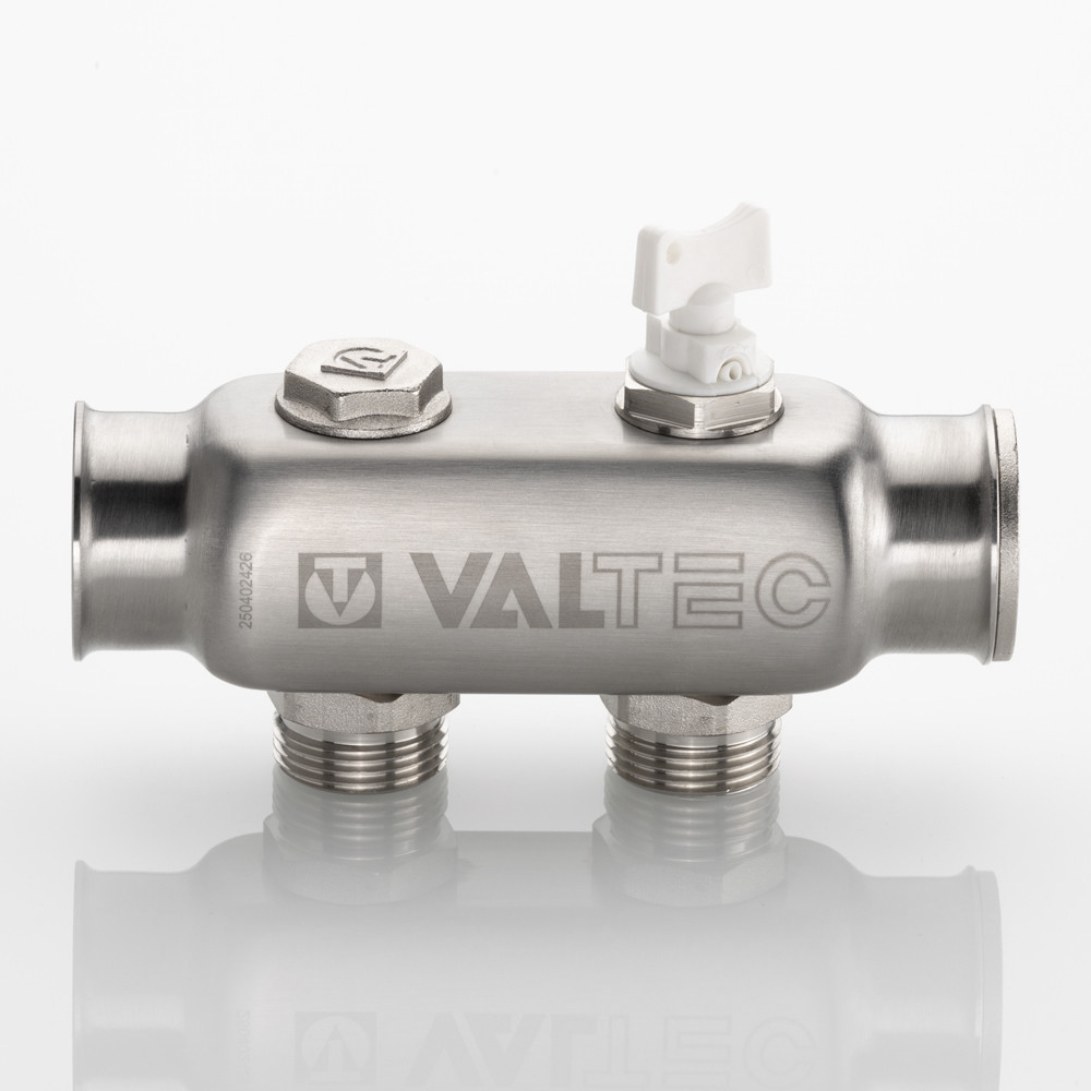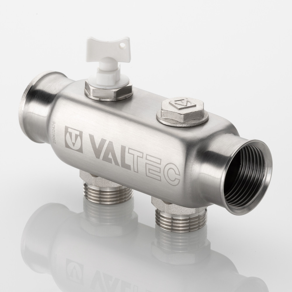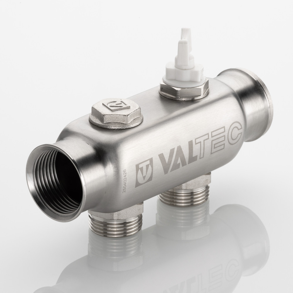 (VTc.505.SS) Коллектор из нержавеющей стали для распределения потоков жидкостей в контурах теплого пола, радиаторного отопления, холодного и горячего водоснабжения. Характеризуется большим, чем у латунных аналогов, проходным сечением, что способствует нормальному выравниванию давления для подключенных потребителей. Межосевое расстояние отводящих патрубков – 50 мм. Резьба патрубков – наружная, стандарт присоединения – «евроконус». Число отводящих патрубков – от 2 до 10. Резьба коллектора – внутренняя, 1". В комплект входит резьбовая пробка для коллектора. Коллектор рассчитан на рабочее давление 10 бар и максимальную температуру рабочей среды 130 °С. Средний полный срок службы изделия – 50 лет.