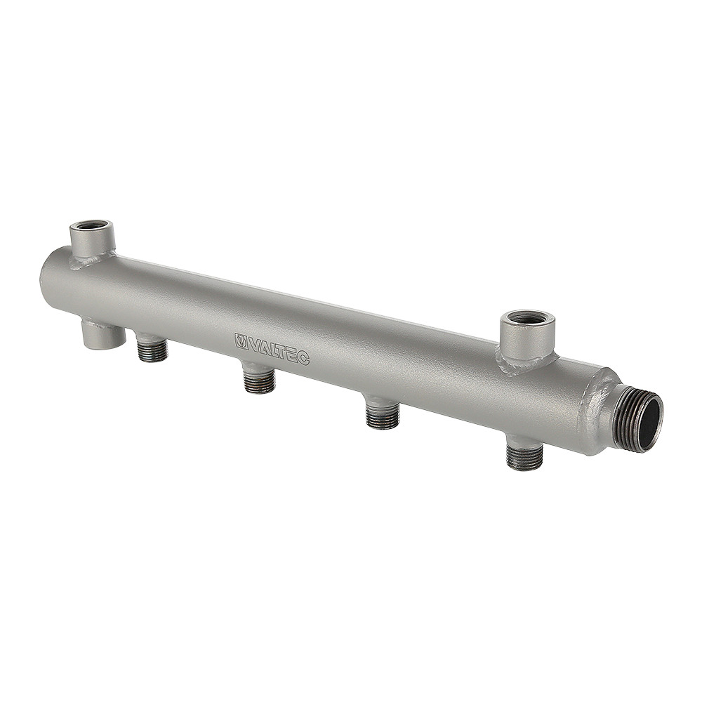 (VTc.510.BS) Коллектор из стали с увеличенным до 100 мм шагом отводящих патрубков предназначен для сборки этажных распределительных узлов (например, для групповой установки квартирных водосчетчиков в этажных узлах учета многоквартирных зданий).