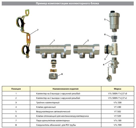 Для крепления коллекторов VTc.500.N.05 (3/4") рекомендуем использовать кронштейны VTc.130.N.0500, VTc.130.IN.0600 (за резьбу).