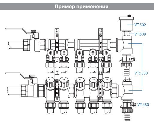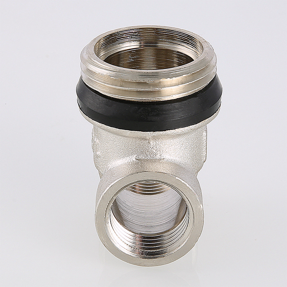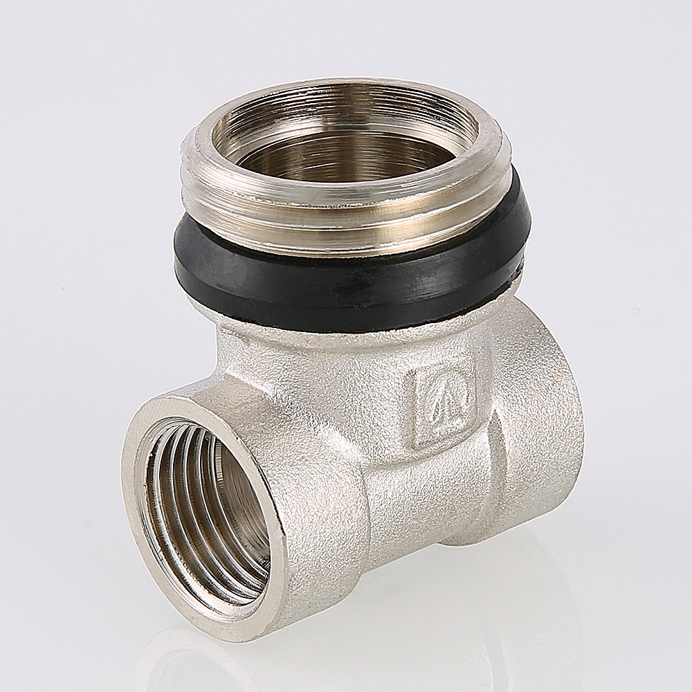 (VTc.530.N) Данный тройник обеспечивает присоединение к распределительному коллектору воздухоотводчика и дренажного крана или других элементов – термометра, манометра, выносного датчика термостата, соединительной трубки и т.д. Изготовлен из качественной сантехнической латуни марки CW617N (европейский стандарт ЕN 12165). Материал уплотнительного кольца – синтетический каучук EPDM. Неиспользуемое отверстие закрывается резьбовой пробкой. Рабочая температура – до 110 °С, давление – до 16 бар. Применяется в коллекторных узлах водяного теплого пола.