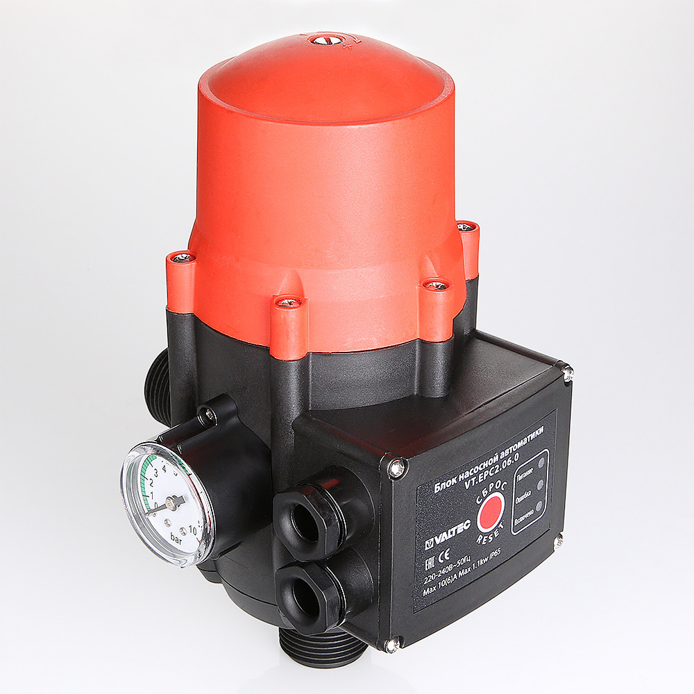 (VT.EPC2.06) Блок насосной автоматики (пресс-контроль) VT.EPC2.06.0 является комбинацией реле минимального давления с реле протока и служит для управления насосами водоснабжения, их защиты от работы «на закрытую задвижку» и в режиме «сухого хода».