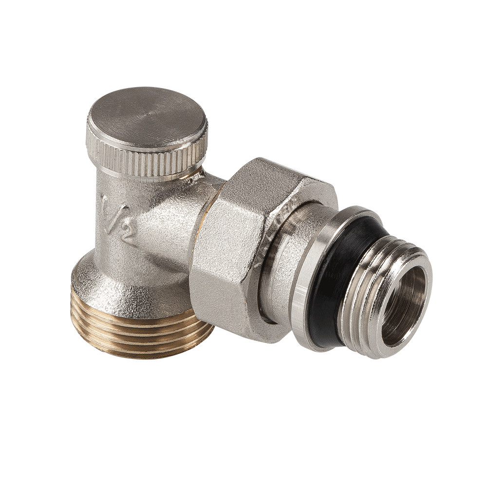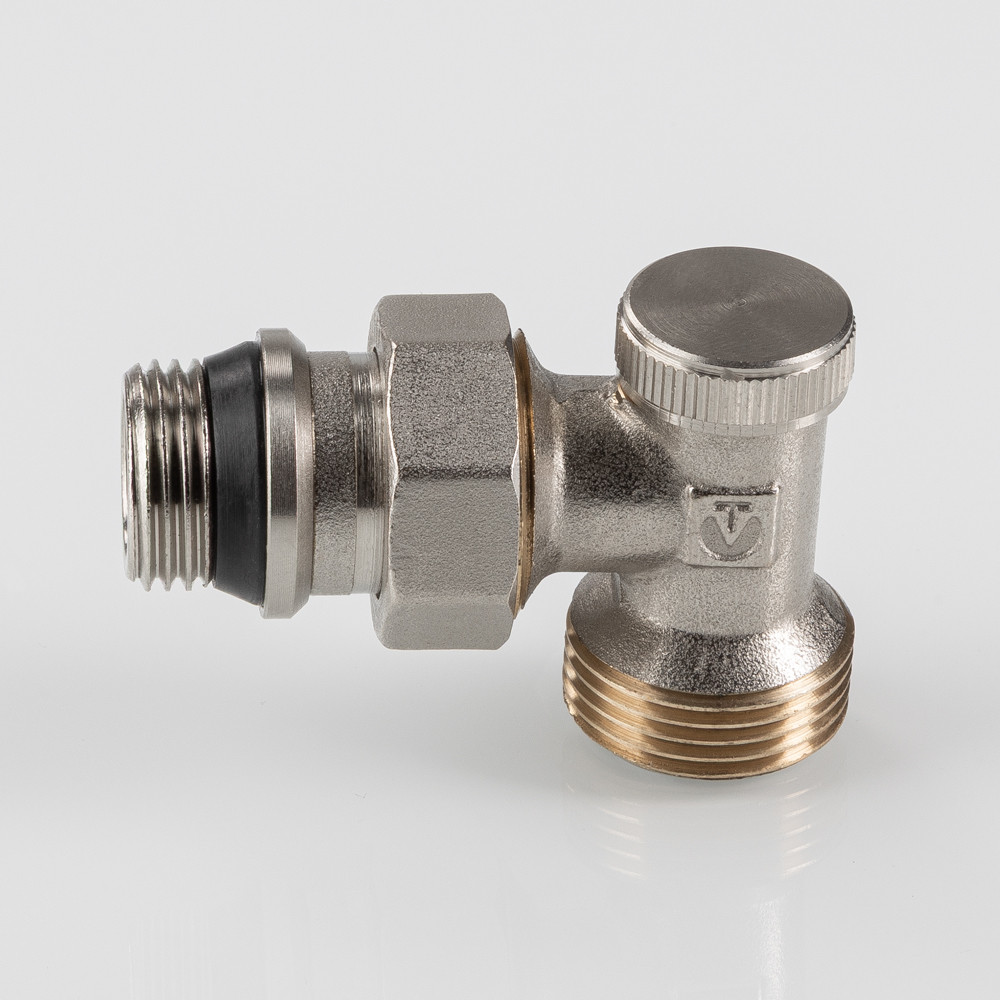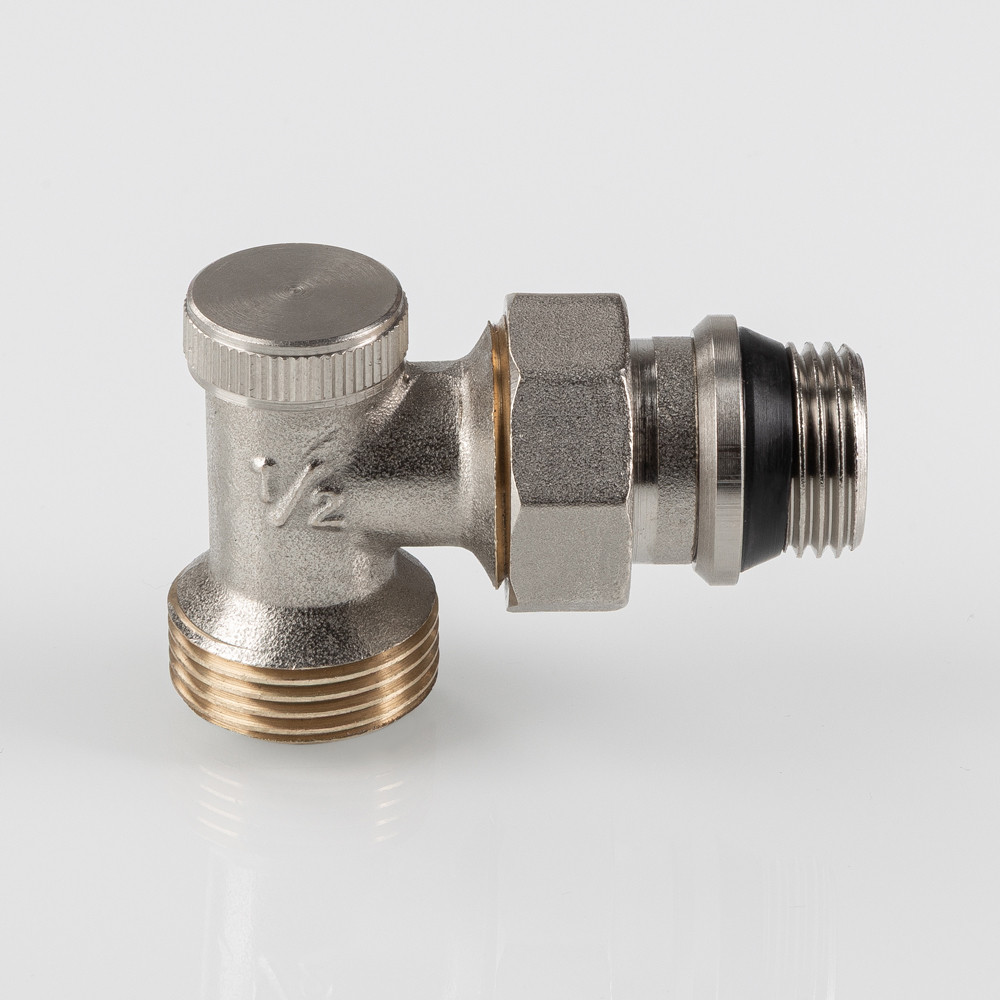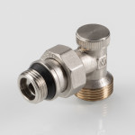 Клапан настроечный угловой с самоуплотняющимся полусгоном и переходом на «евроконус» – ремонтопригодный. Рабочая температура – до 130 °С, давление – до 10 бар.