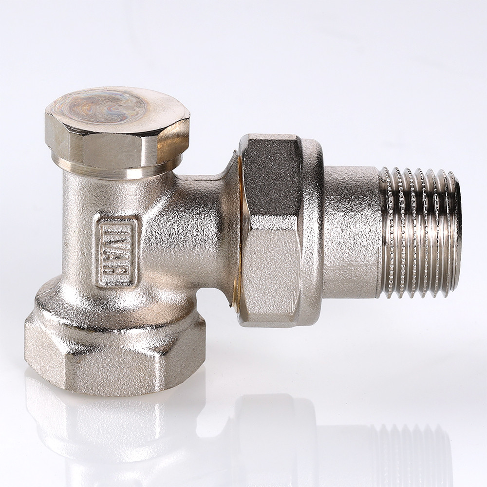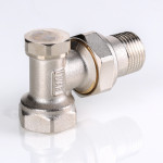 (VT.019.N) Угловой радиаторный клапан. Основное назначение – настройка расхода теплоносителя через отопительный прибор при балансировке системы. Наличие полусгона позволяет монтировать и демонтировать клапан без демонтажа трубопровода. Ремонтопригодный. Пропускная способность клапана не зависит от направления потока. Рабочая температура – до 130 °С, давление – до 10 бар. Резьба присоединений – внутренняя/наружная.