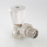 (VT.007.LN) Угловой компактный (облегченный) радиаторный клапан. Основное назначение – ручное плавное регулирование расхода теплоносителя через отопительный прибор. При замене регулировочной ручки на защитный колпачок может использоваться в качестве настроечного клапана. Наличие полусгона позволяет монтировать и демонтировать клапан без демонтажа трубопровода. Ремонтопригодный. Рабочая температура – до 110 °С, давление – до 10 бар. Резьба присоединений – внутренняя/наружная.
