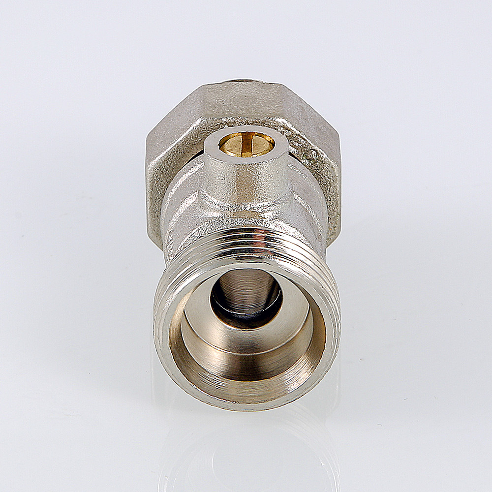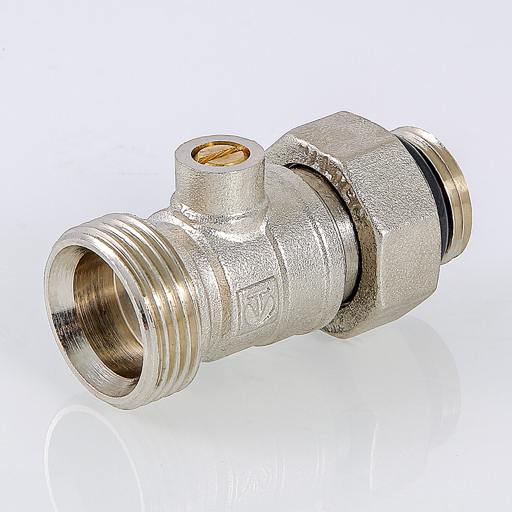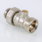 (VT.345R.N) Кран для нижнего подключения отопительных приборов (алюминиевых и биметаллических радиаторов) с отличным от 50 мм межосевым расстоянием присоединительных патрубков. Снабжен шаровым затвором для перекрытия потока. Резьба патрубков для присоединения труб – наружная, 3/4", под фитинг стандарта «евроконус». Патрубки для подключения к радиатору – с накидной гайкой, резьба – внутренняя, 3/4", стандарта «евроконус». В комплекте – самоуплотняющиеся переходники на наружную резьбу диаметром 1/2" VT.AVK01. Рабочая температура – до 130 °С, давление – до 10 бар.