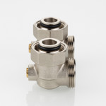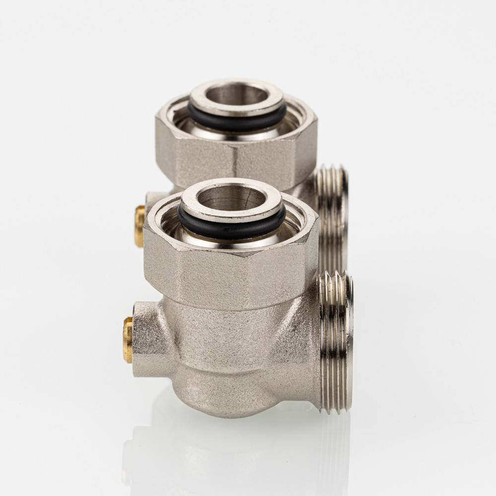 Особенность узла – угловое расположение относительно друг друга патрубков присоединения к отопительному прибору и трубной разводке. Это, в частности, упрощает так называемое тыльное подключение отопительного прибора – при скрытых в стене подводящих трубах.