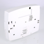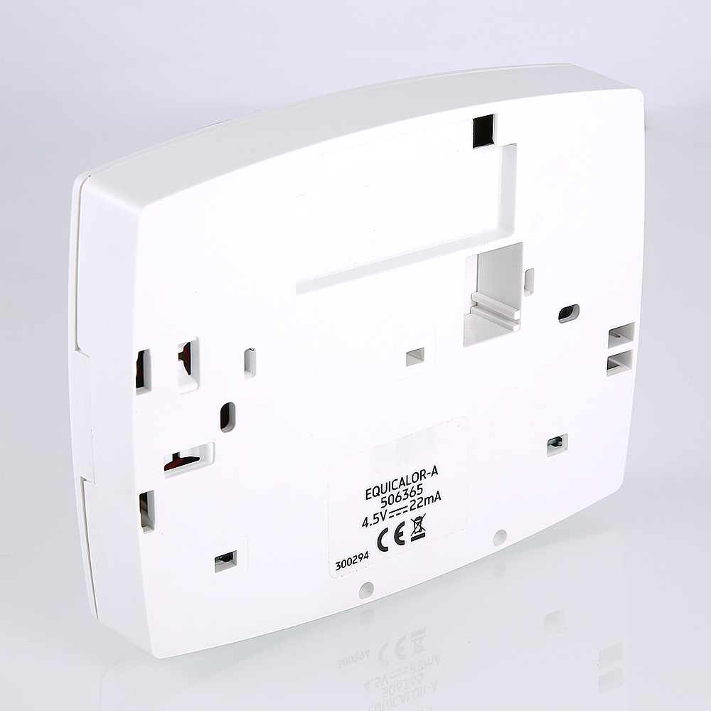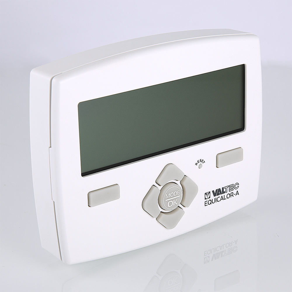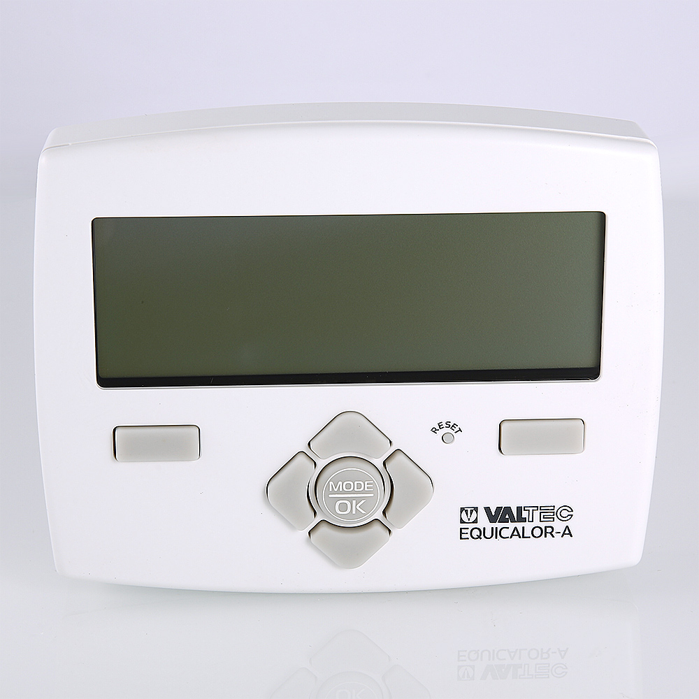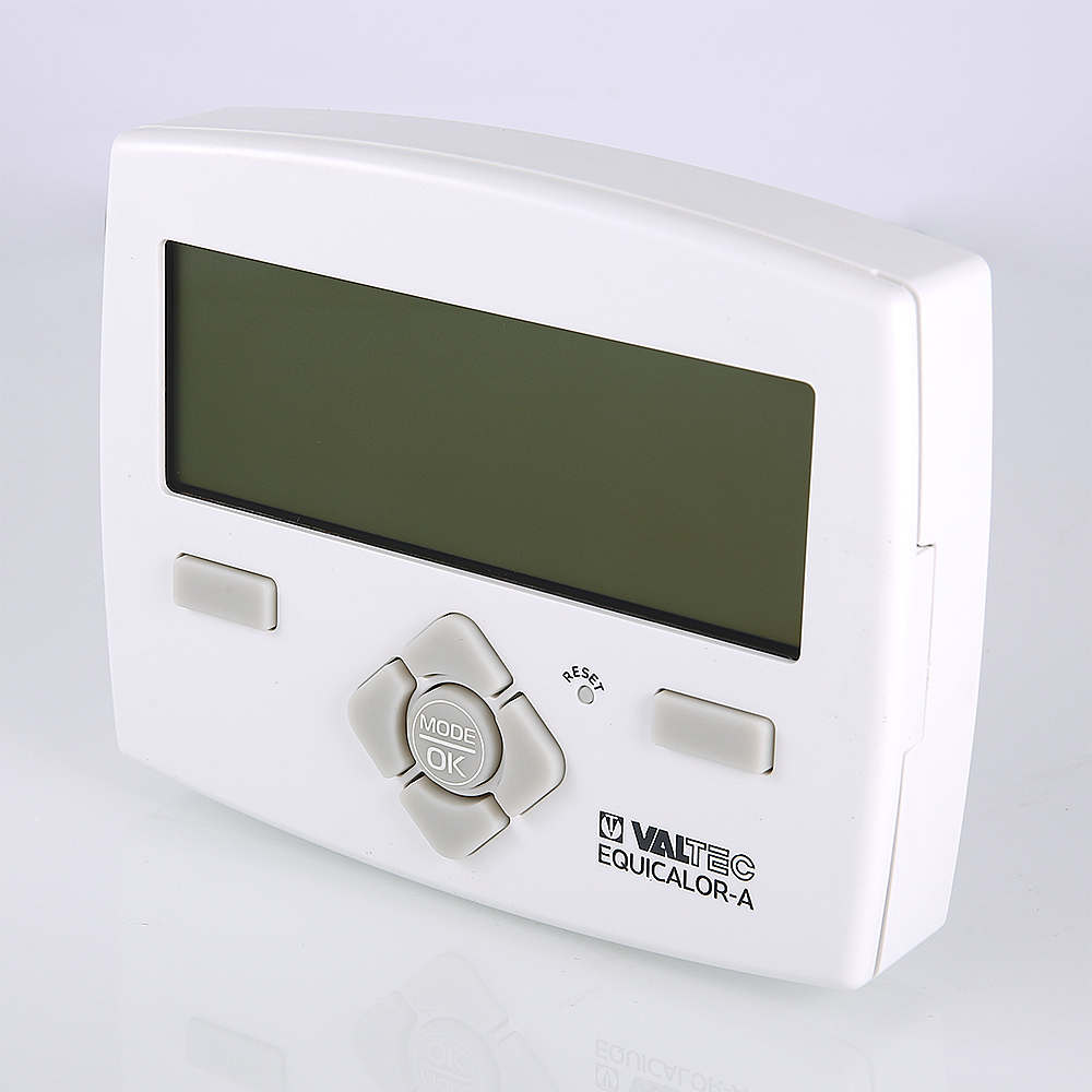 Прибор оборудован встроенным датчиком температуры воздуха. Сравнивая его показания с данными от датчика радиосервопривода, установленного в этом же помещении, программатор вносит соответствующую поправку в работу прочих сервоприводов. Это исключает искажение регулирования из-за нагрева сенсоров воздухом от отопительных приборов. Питание – от батареек (3 х 1,5 В, АА). Монтаж – настенный.
