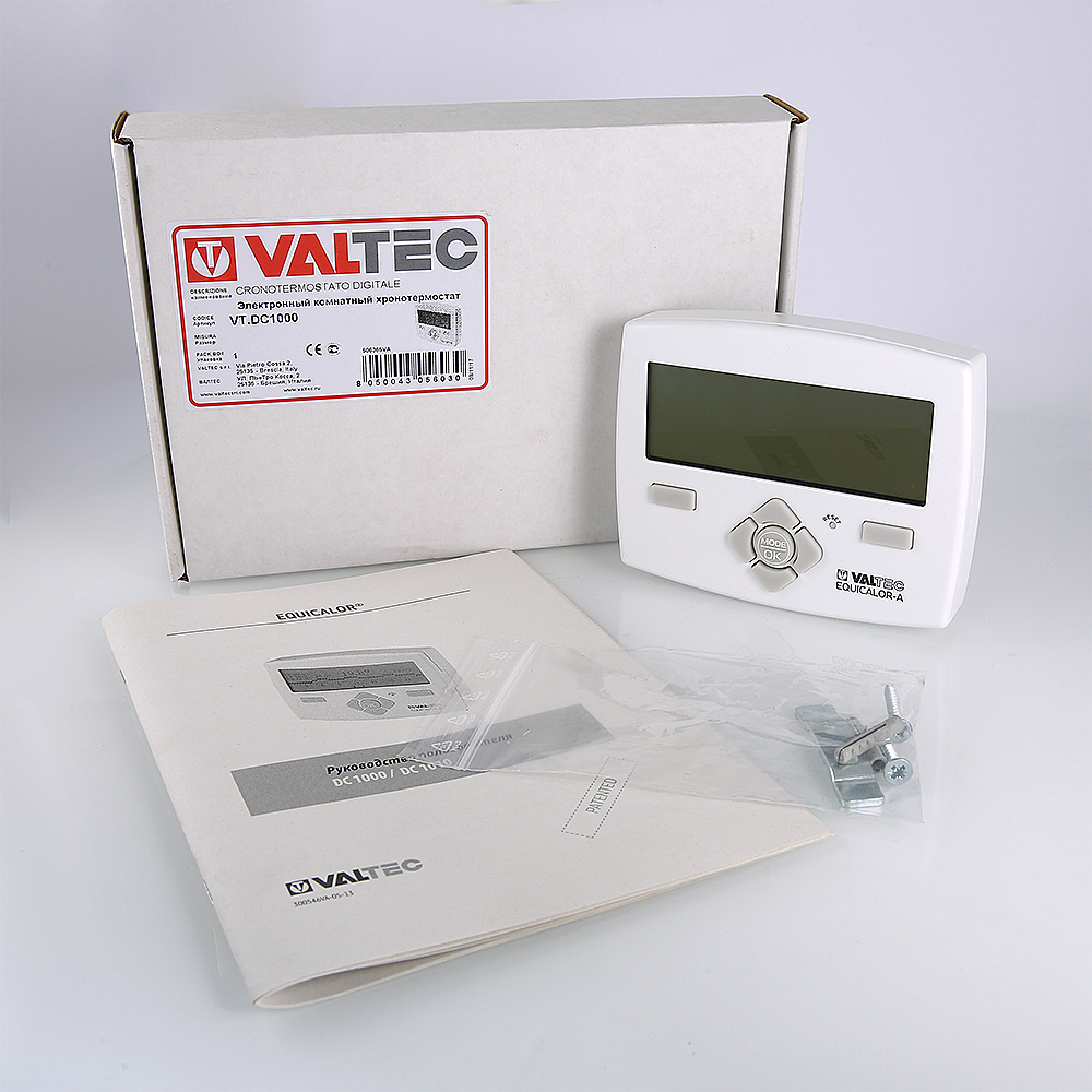 (VT.DC1000) Программатор представляет собой электронный хронотермостат со встроенным модулем передачи данных по беспроводному каналу. С помощью радиосервоприводов VT.AS1000 осуществляет регулирование работой радиаторов отопления по заданной пользователем программе (недельная/суточная, с возможностью разделения исполнительных механизмов на 8 зон с собственными режимами обогрева). Максимальное число подключаемых сервоприводов – 28. Программируемые режимы: «Антизамерзание», «Энергосбережение», «Комфорт».