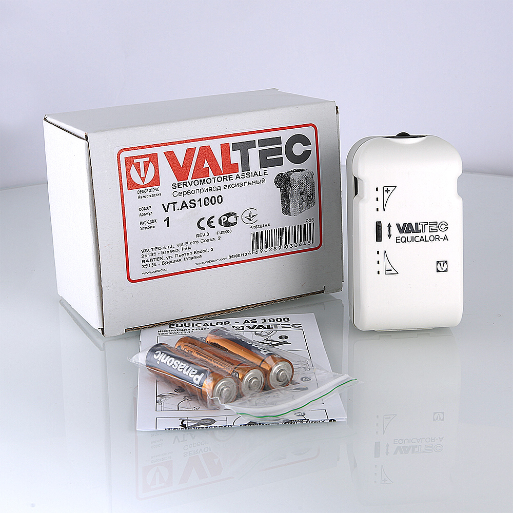 (VT.AS1000) Сервопривод – исполнительный механизм системы дистанционного управления отопительными приборами VALTEC с функцией измерения температуры воздуха обслуживаемого помещения (встроенный сенсор). Обмен сигналами с программатором – по беспроводному каналу. Прибор снабжен указателем степени закрытия клапана в виде пронумерованного диска, ручной корректировкой нагрева окружающего воздуха, работает от батареек (3 х 1,5 В, АА). Радиосервопривод совместим с радиаторными клапанами, оснащенных присоединением стандарта М30 х 1,5.