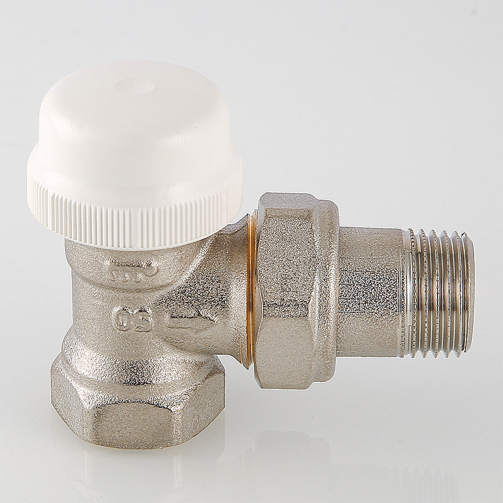 (VT.031.N) Угловой клапан для ручного или автоматического регулирования расхода теплоносителя через отопительный прибор. Во втором случае комплектуется термостатической головкой или сервоприводом, управляемым комнатным термостатом или контроллером. Использование регулирующих клапанов VALTEC c термостатической головкой позволяет автоматически поддерживать заданную температуру в помещении с точностью до 1 °С. Наличие полусгона дает возможность монтировать и демонтировать клапан без демонтажа трубопровода. Ремонтопригодный. Рабочая температура – до 110 °С, давление – до 10 бар. Резьба трубных присоединений – внутренняя/наружная, для термостатической головки или сервопривода – наружная, М30 x 1,5.