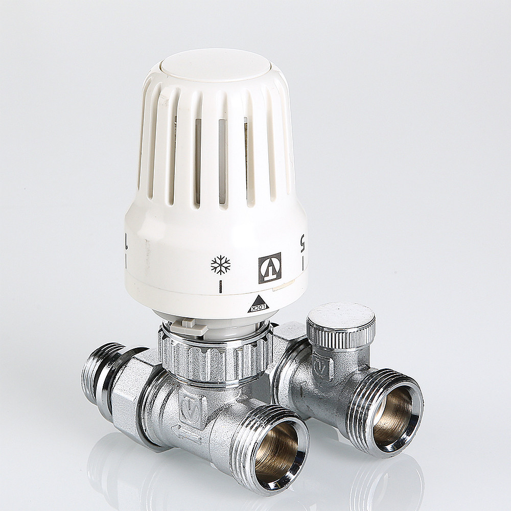Набор предназначен для бокового подключения прибора водяного отопления, автоматического регулирования расхода теплоносителя через него в зависимости от температуры воздуха в помещении, гидравлической балансировки системы отопления. Клапаны выполнены из качественной сантехнической латуни с гальваническим покрытием и оснащены самоуплотняющимися полусгонами. Колпачок ручной регулировки на термостатическом клапане состоит из двух частей – неподвижной нижней и вращающейся верхней. Это позволяет многократно производить монтажную настройку клапана в условиях строительства (до установки термостатической головки), не переживая за целостность резьбы на пластиковом колпачке. Комплект помещен в пылевлагозащитную упаковку (блистер). Стоимость данного комплекта меньше, чем при раздельной покупке входящих в него элементов.