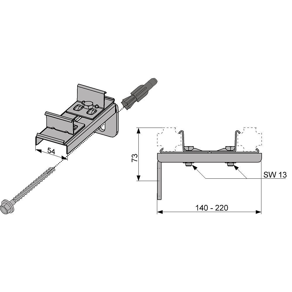(WB90311) Крепление двойное WALLBOX поставляется с дюбелем с распорным элементом Termoclip-стена V2 10х60 GEO. Опционально можно докупить звукоизоляцию крепежных элементов WB90219 (в комплект поставки WB90313 не входит). Материал – оцинкованная сталь.
