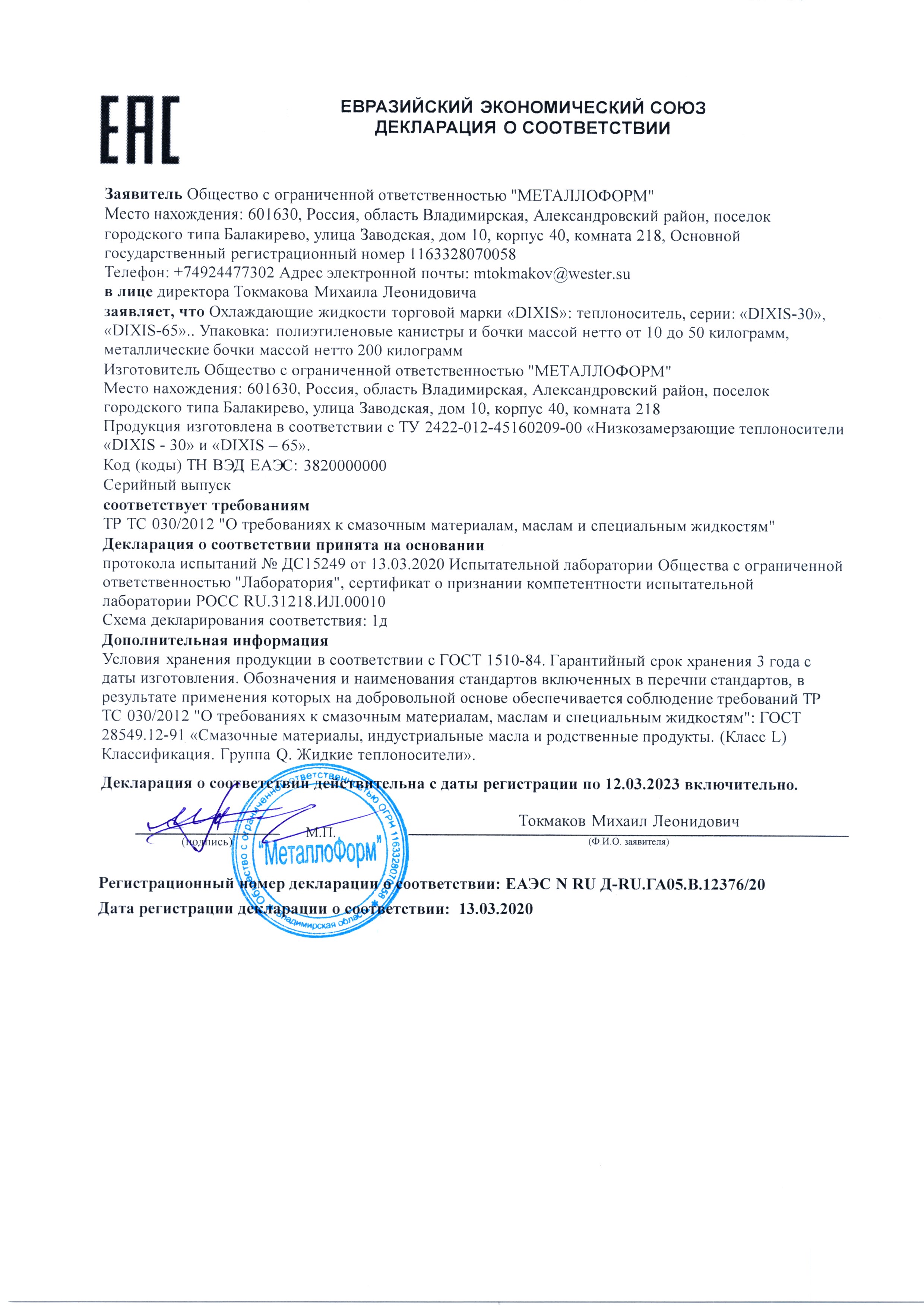 - Теплоноситель DIXIS NIXIEGEL 65