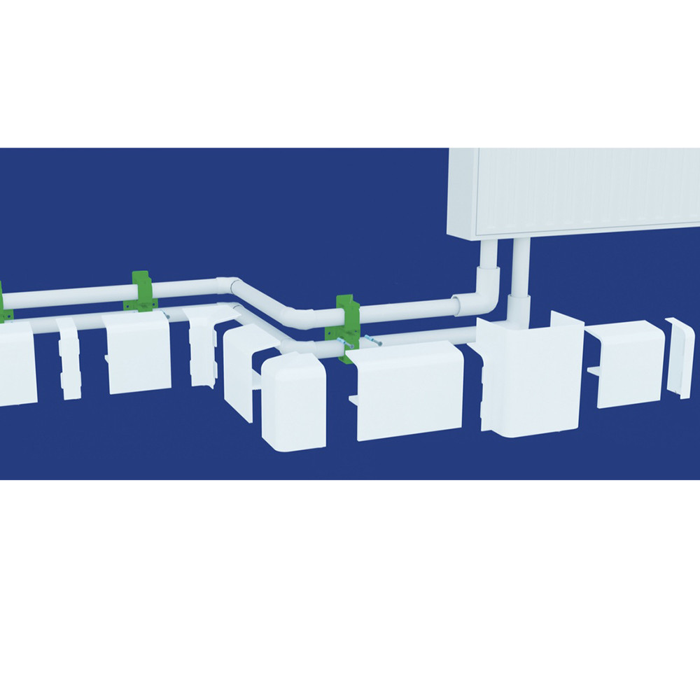 (TП10025324) Пластиковый короб системы AQUA позволяет скрыть трубы отопления диаметром до 20 мм, идущие от радиатора. Элемент соединяется с плинтусом AQUA 37, образуя единую систему и минимизируя монтажные работы. Короб выполнен в белом цвете.