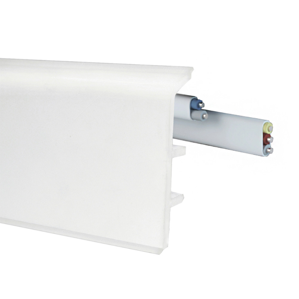 В совокупности с плинтусом AQUA 37 данный плинтус представляет систему AQUA, которая позволяет закрывать горизонтальные разводки труб отопления и кабеля. Такая возможность обеспечена за счет разной толщины плинтусов, 37 мм для скрытия труб отопления и 20 мм для скрытой проводки.