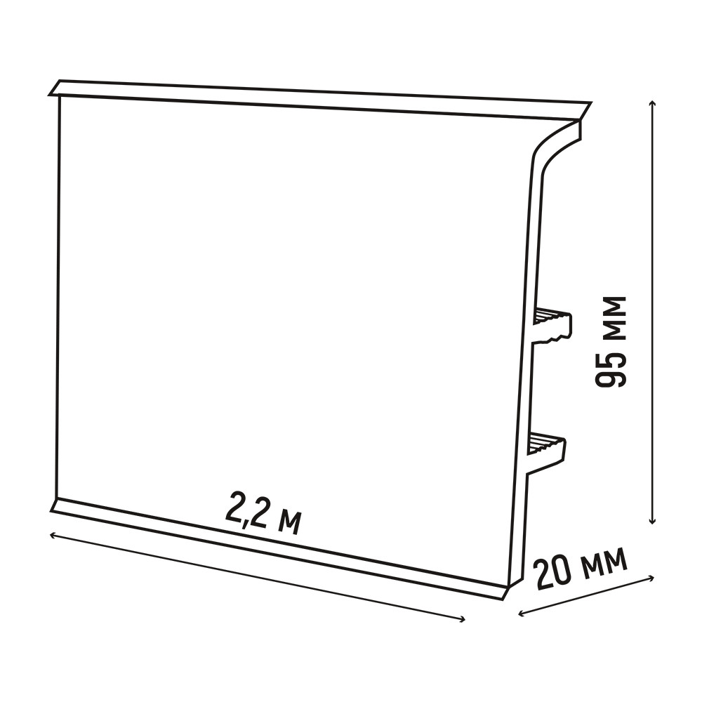 Размеры плинтуса (длина x ширина x высота): 2200 x 20 x 95 мм.