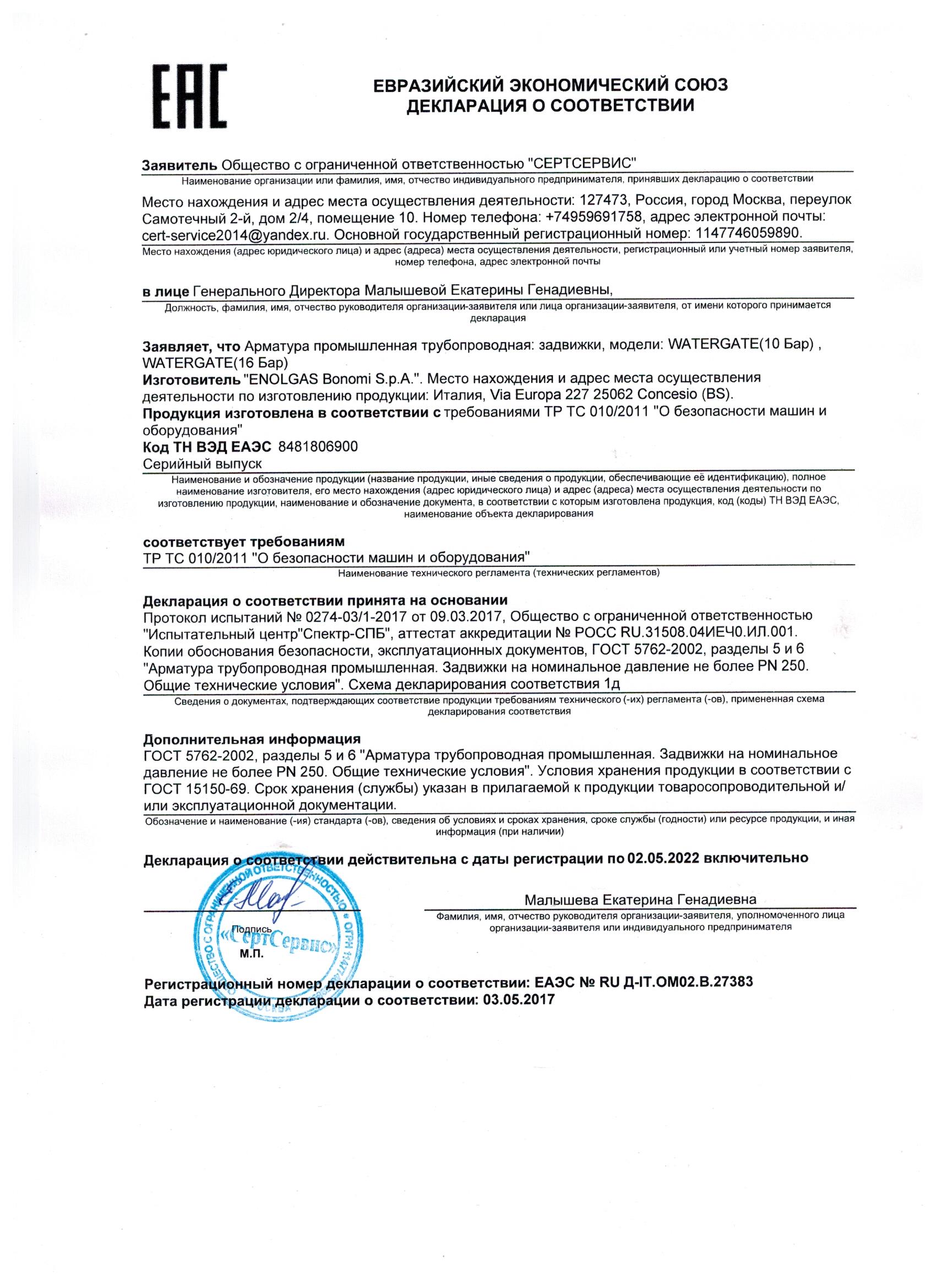 - Клиновая задвижка WATERGATE