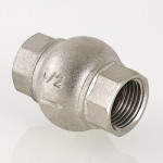 (VT.151.N) Обратный клапан VT 151 допускается использовать в установках холодного и горячего водоснабжения, водяного отопления, подачи сжатого воздуха, других жидкостей и газов, неагрессивных к материалам клапана. Клапан может устанавливаться в любом положении (гидравлические характеристики не меняются) и не имеет трущихся поверхностей. Корпус, шток и золотниковая тарелка выполнены из латуни марки CW617N (европейский стандарт EN 12165), никелированы. Благодаря этому клапан допускается применять в системах с рабочей температурой до 130 °C. Сферическая форма золотниковой камеры обеспечивает большую, чем у цилиндрических клапанов, пропускную способность. Номинальное рабочее давление клапана VALTEC VT 151 – 25 (Ду 1/2") и 16 (Ду 2") бар. Минимальное рабочее давление – 0,05 бара. Минимальный перепад давления открытия клапана – 0,025, закрытия – 0 бар (закрывается от пружины). Присоединительная резьба – внутренняя/внутренняя.
