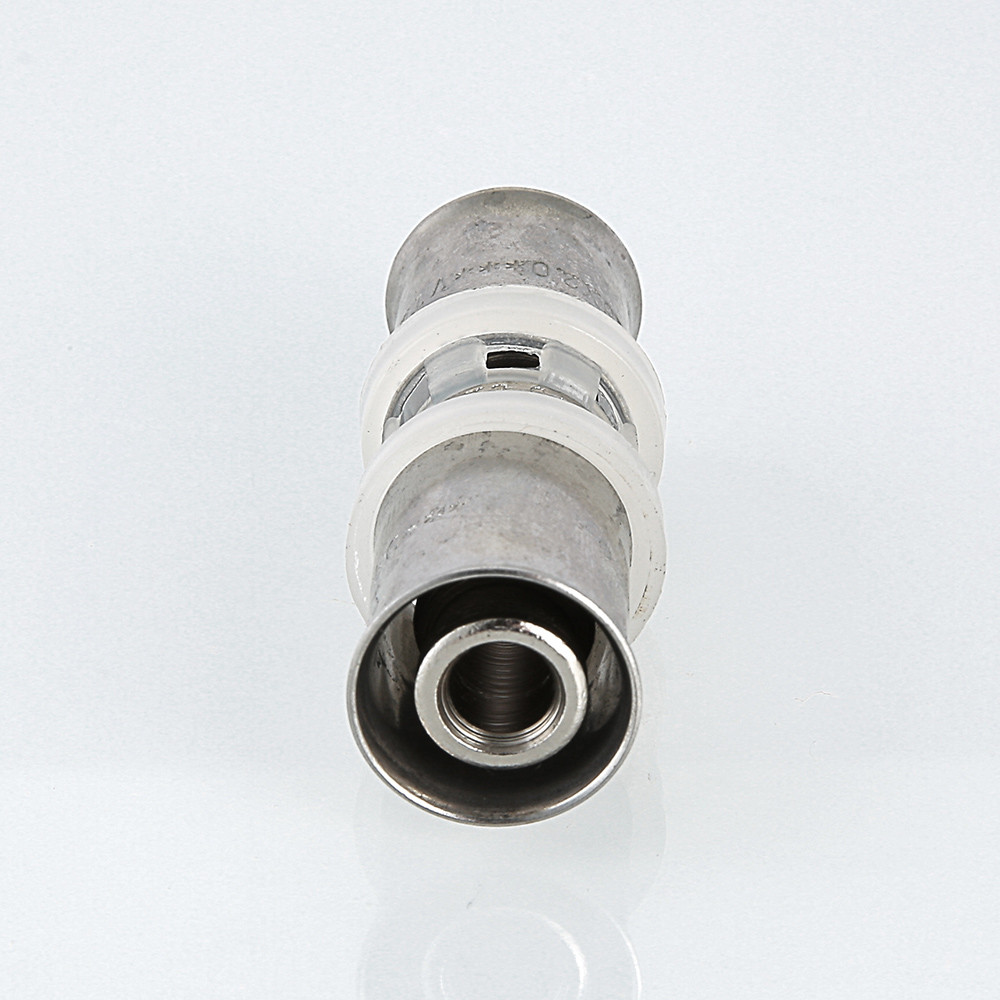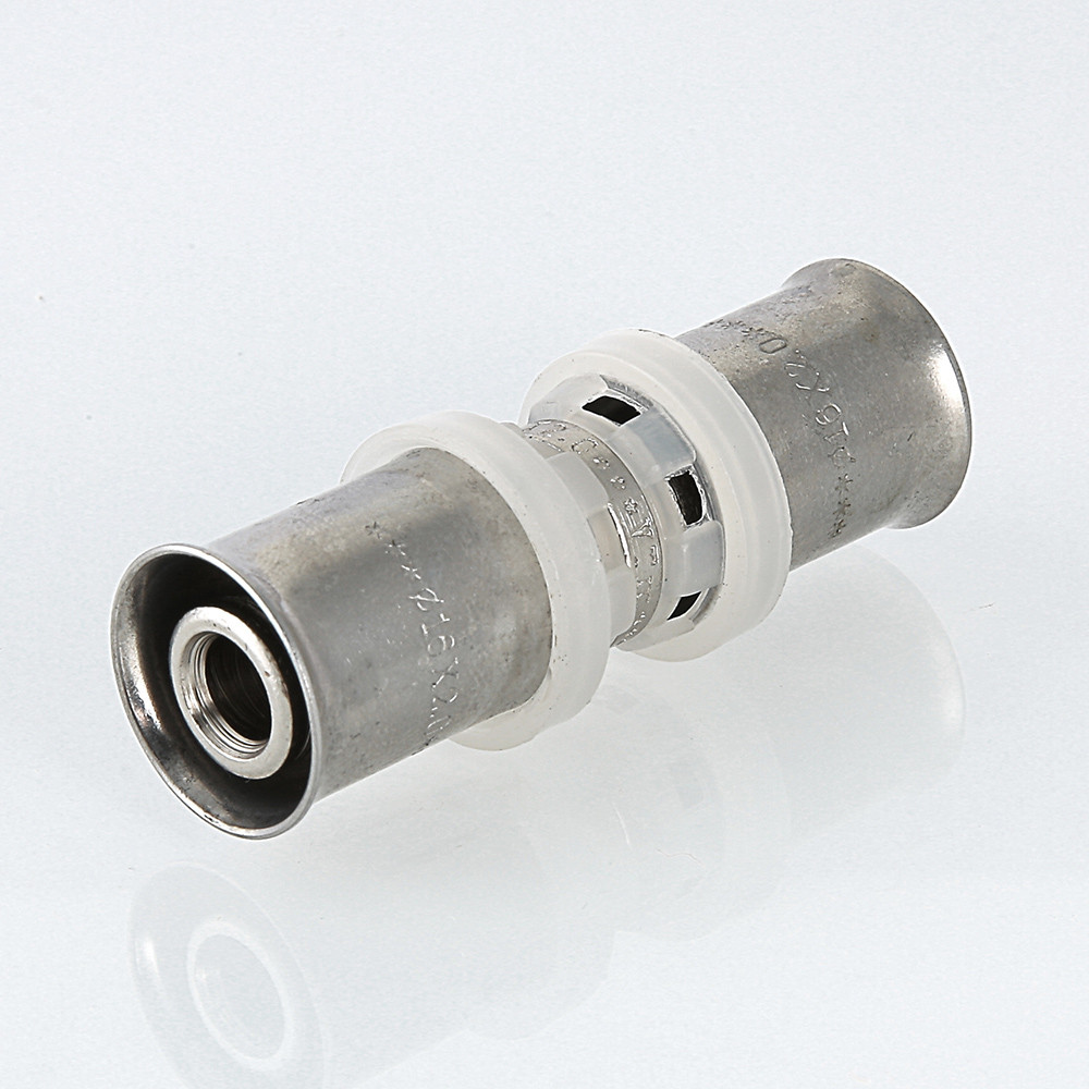 (VTm.203.N) Прямой пресс-фитинг предназначен для соединения между собой металлополимерных или полиэтиленовых (РЕ-Х, PE-RT) труб. Переходные модели позволяют соединять трубы разного диаметра. Монтаж производится пресс-инструментом с насадками типа «ТН».
