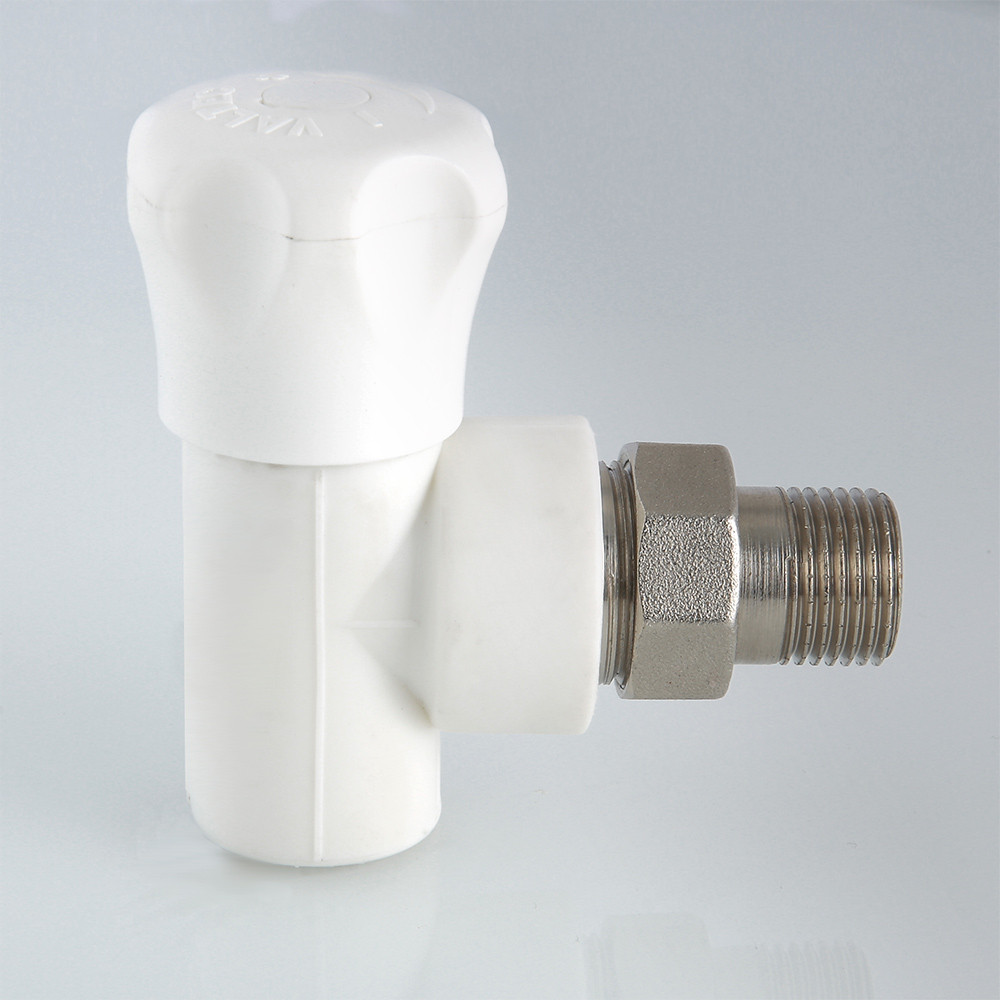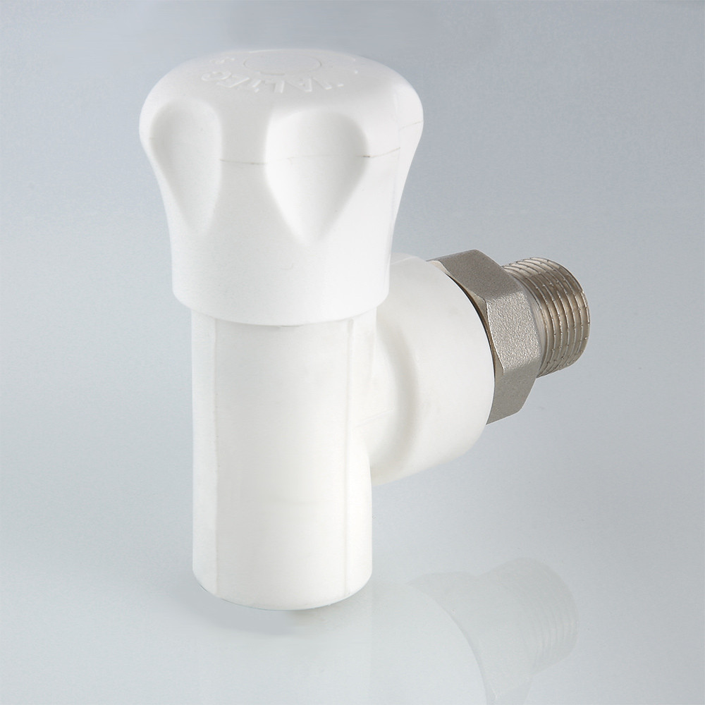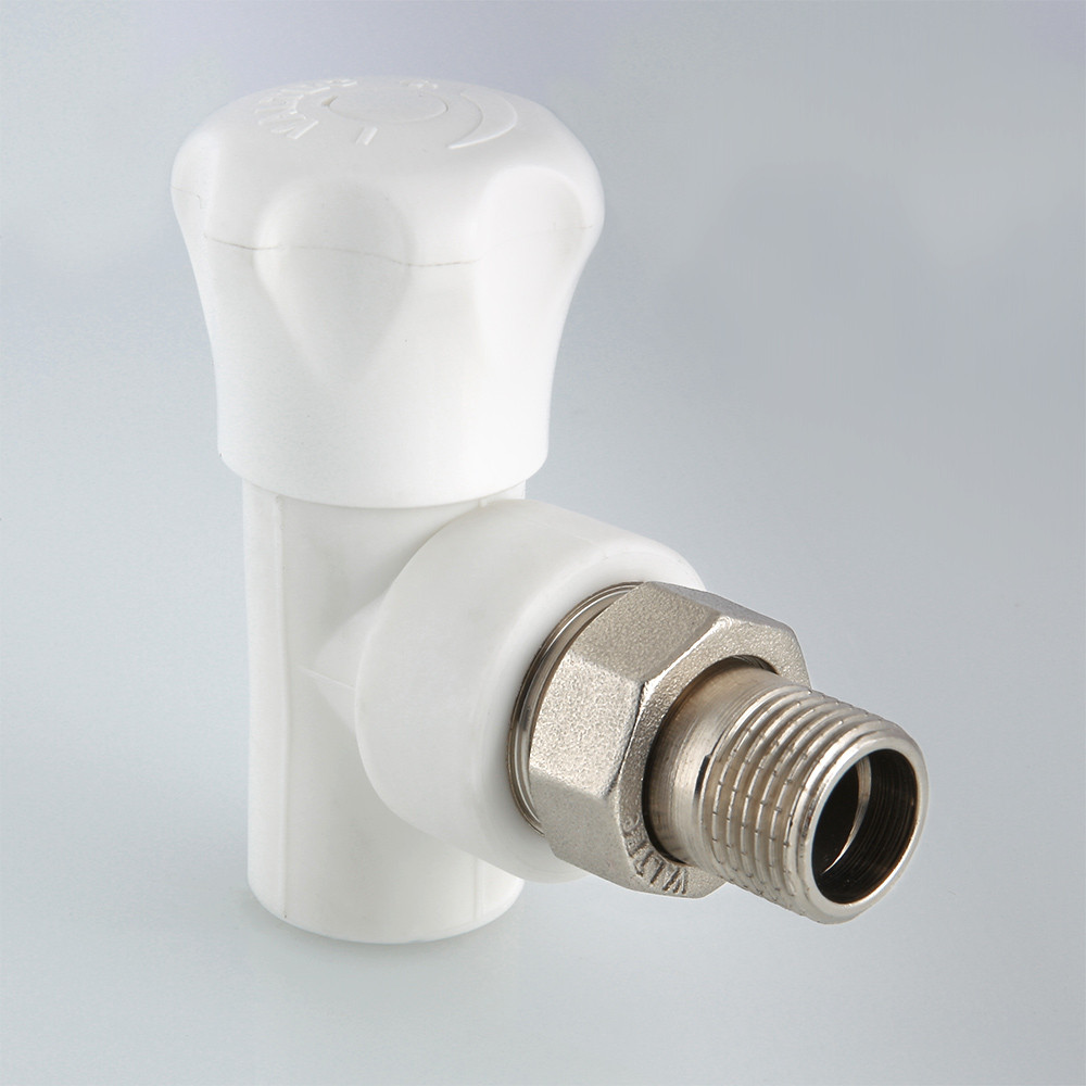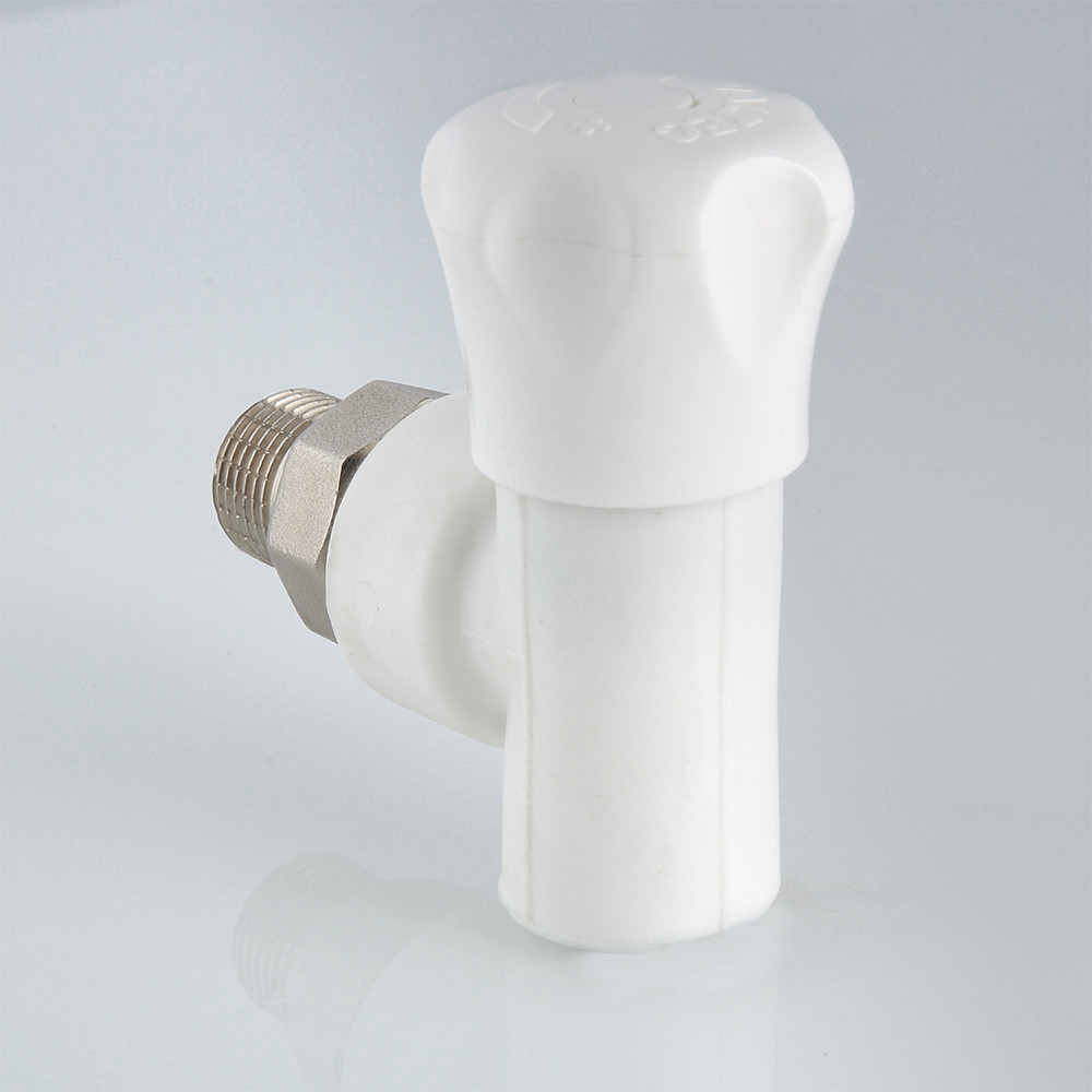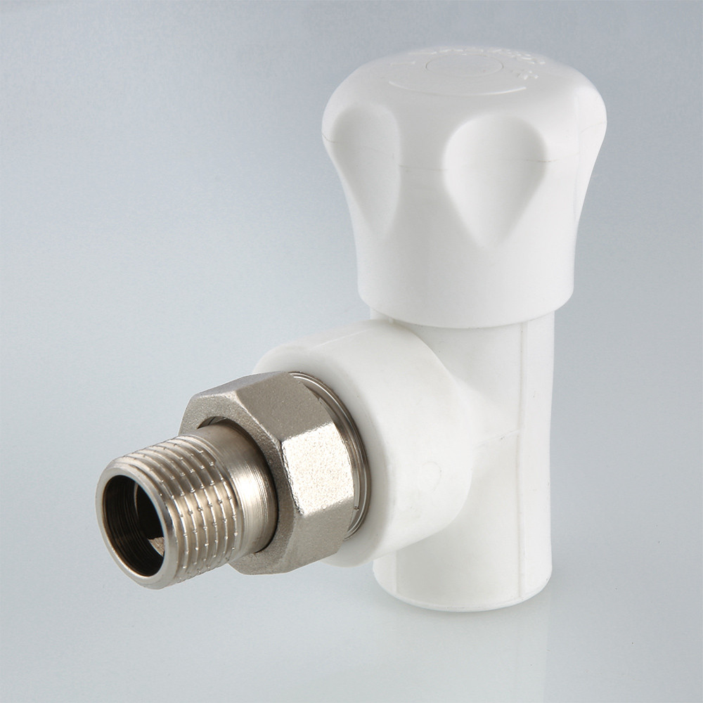 (VTp.718.V) Клапан с полипропиленовым корпусом, угловой. Предназначен для ручной регулировки количества поступающего в отопительный прибор теплоносителя. Клапан позволяет полностью перекрывать поток. Подключение клапана к отопительному прибору производится с помощью закладной детали и полусгона, выполненных из латуни с никелевым покрытием. Монтаж полипропиленовой трубы производится раструбной сваркой. Кроме отопления полипропиленовый клапан VTp.718.V можно использовать в водоснабжении, включая питьевое, и технологических установках.
