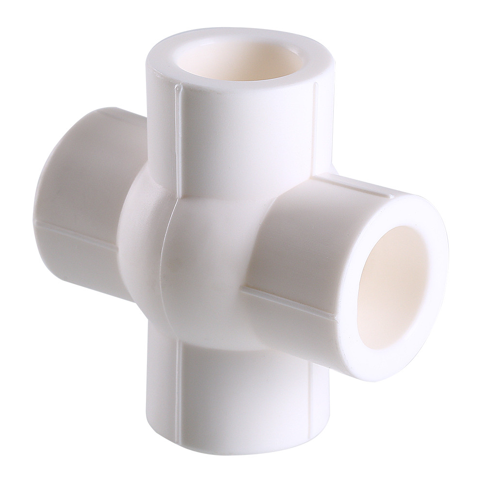 (VTp.775.0) Крестовина полипропиленовая компланарная позволяет выполнять пересечение полипропиленовых трубопроводов, лежащих в одной плоскости, без применения дополнительных фасонных деталей. Этот сокращает время и стоимость монтажа, освобождает рабочее пространство, которое занимал бы отвод, и полученное соединение смотрится гораздо эстетичнее вариантов, смонтированных с использованием других фитингов.