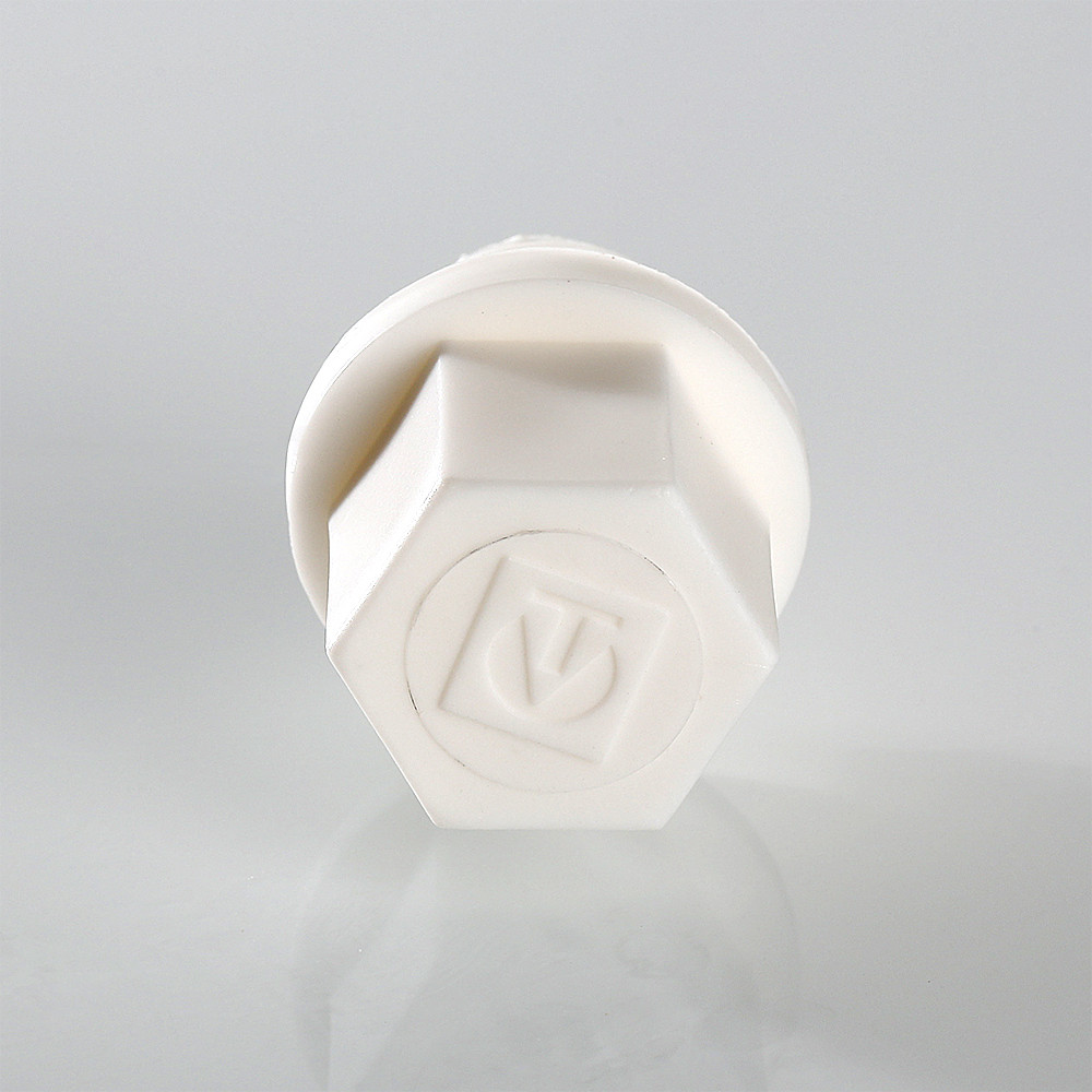 (VTp.791.0) Пробка полипропиленовая с резьбой предназначена для герметичного перекрытия трубопровода в неиспользуемых патрубках фитингов или арматуры с внутренней резьбой. Имеет шестигранный корпус, под гаечный ключ, и реборду.
