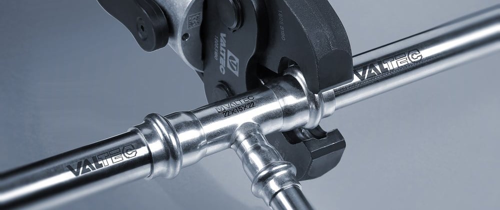 Бренд VALTEC предлагает вашему вниманию модельный ряд труб и фитингов из нержавеющей стали марки AISI 304 типоразмеров от 18 до 54 мм, а также инструмент необходимый для их монтажа.