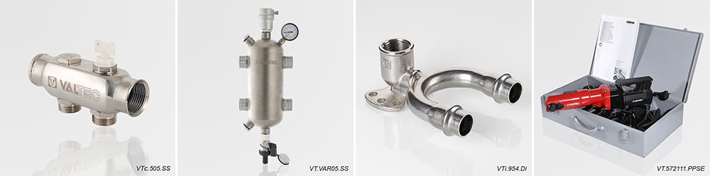 Один из основных принципов компании VALTEC – предлагать не отдельные компоненты инженерных систем, а комплекс продукции для их создания. Помимо труб, фитингов и инструмента из нержавеющей стали вы так же сможете найти в нашем ассортименте гидравлические стрелки, коллекторы, латунную арматуру, крепеж и прочие компоненты, необходимые для сборки как систем отопления, так и систем водоснабжения.