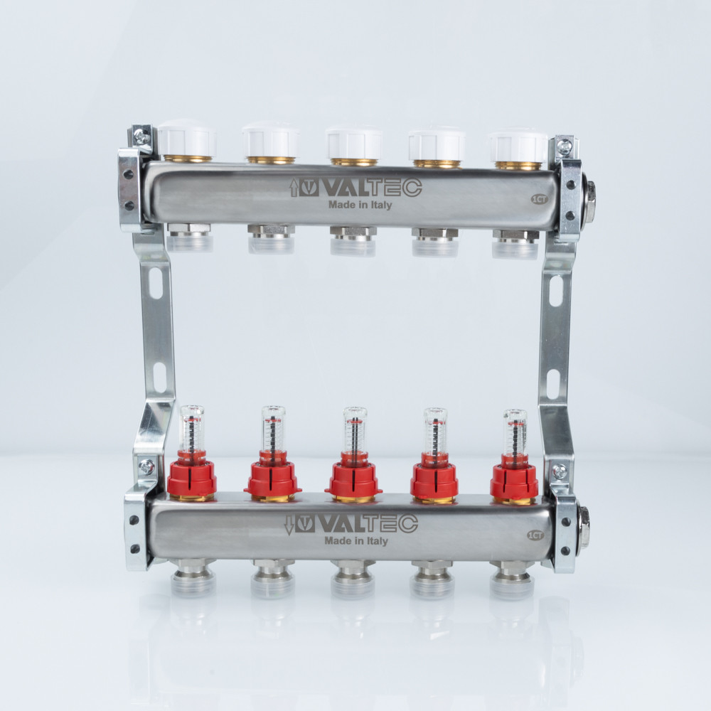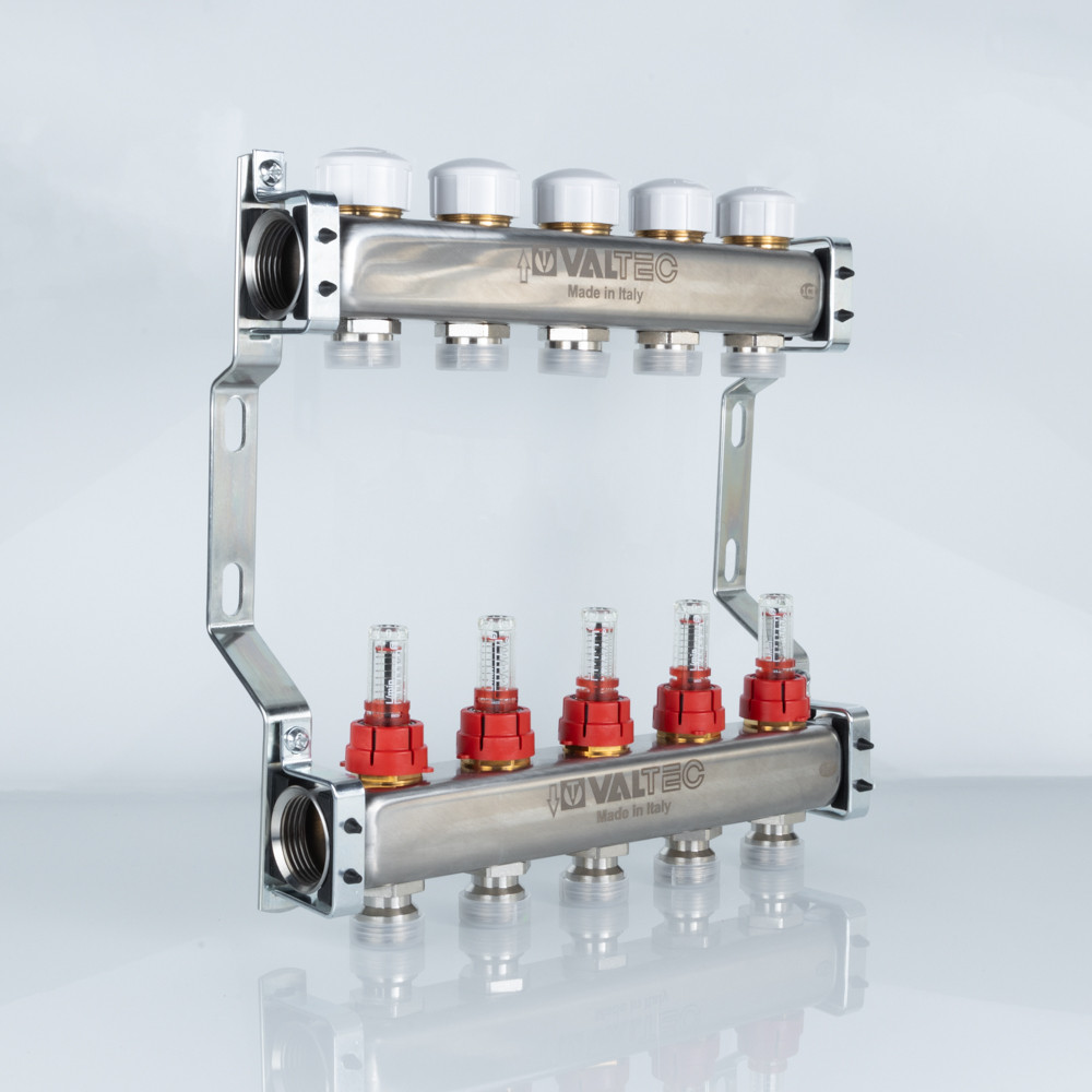 (VTc.584.EMNX) Коллекторные блоки из нержавеющей стали VTc.584 служат для распределения потока транспортируемой среды по контурам системы напольного отопления.