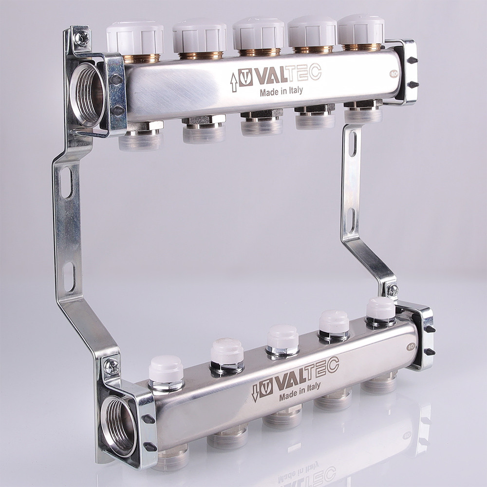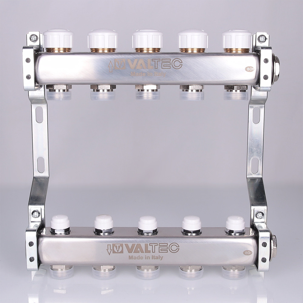 (VTc.582.EMNX) Коллекторные блоки из нержавеющей стали VTc.582 служат для распределения потока транспортируемой среды по контурам системы отопления – напольного или радиаторного.
