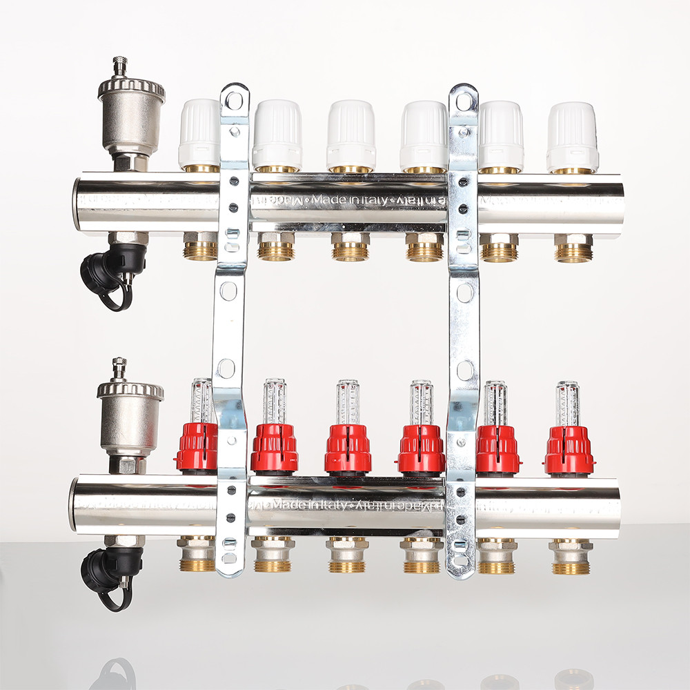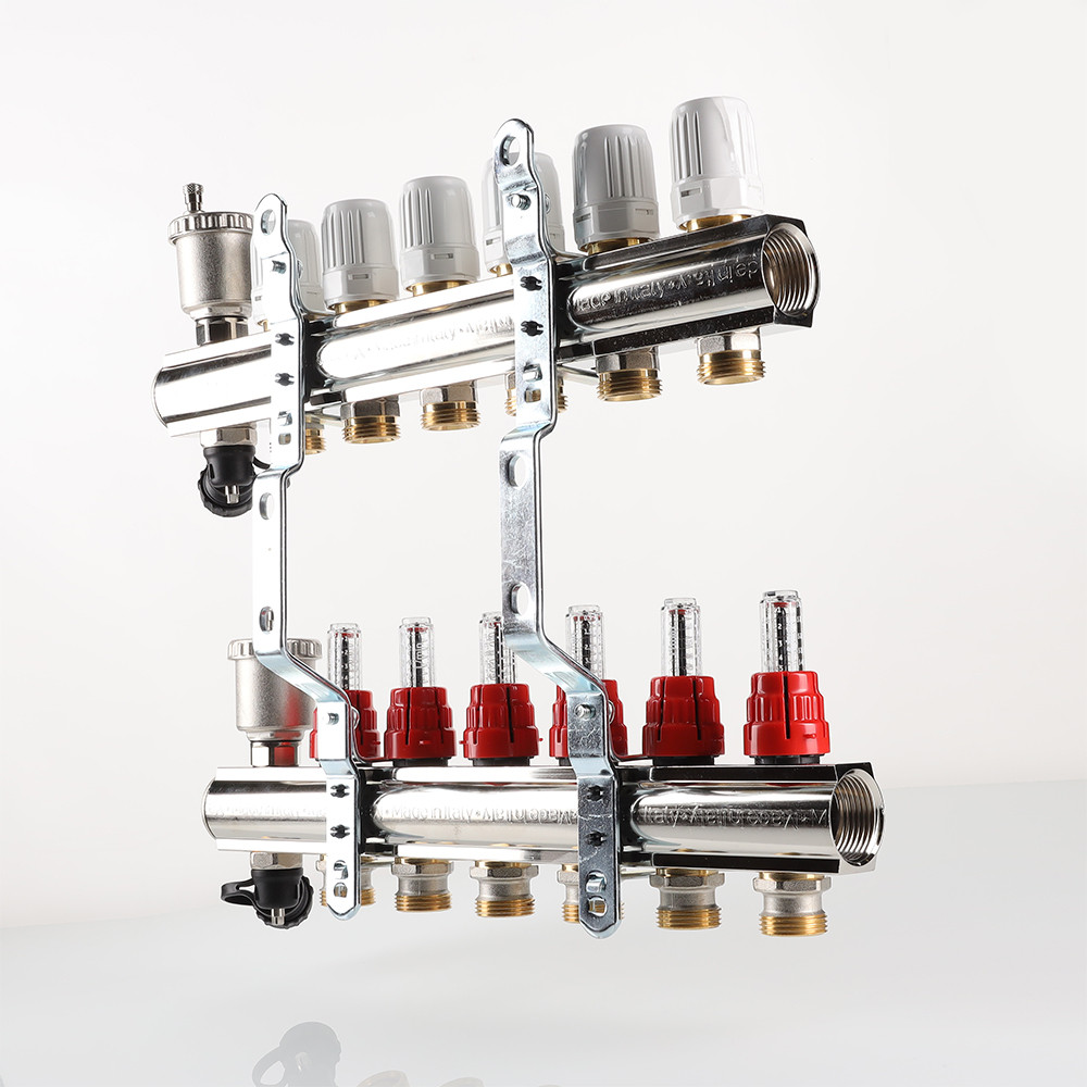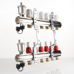 На выходах прямого коллектора установлены настроечные клапаны с расходомерами, обратный коллектор оснащен регулировочными клапанами (ручные, с возможностью оборудования сервоприводами).