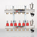 - Коллекторный блок латунный с регулирующими клапанами и расходомерами
