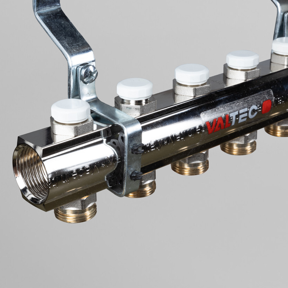 Диаметр коллекторов – 1 или 1 1/4". Число выходов – от 3 до 12. Диаметр патрубков – 3/4", резьба – наружная, стандарт присоединения – «евроконус». Рабочая температура теплоносителя – до 120 °С, давление – до 10 бар.