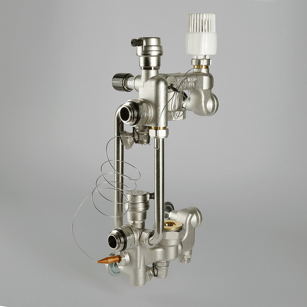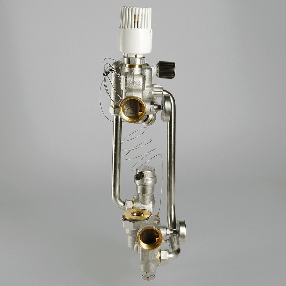 Балансировочный клапан в линии подмеса задает соотношение теплоносителя, поступающего из обратной линии вторичного контура и прямой линии первичного.