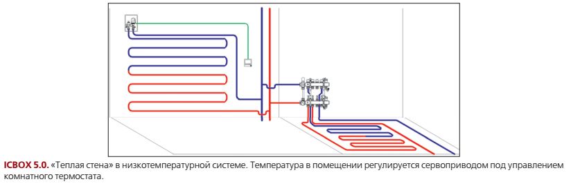 (VT.ICBOX.5) Терморегулирующие монтажные модули VT.ICBOX предназначены для создания водяного теплого пола на площадях до 15 кв. м, настенного водяного отопления или регулирования работы приборов водяного отопления. Комплекты VT.ICBOX позволяют подключать низкотемпературную систему к первичному контуру отопления без насосно-смесительного узла. При использовании модулей для регулирования работы отопительных приборов не требуется установка терморегуляторов непосредственно на радиаторах и конвекторах, повышается качество терморегулирования (отсутствует влияние конвективных потоков).