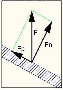 Рис. 5. Взаимодействие продольной силы с наклонной плоскостью