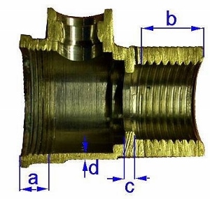 a – резьба, соединяющая два полукорпуса крана, должна иметь не менее трех ниток. Как правило, это метрическая резьба с шагом 1,25 мм;