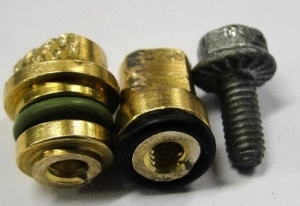 Самым надежным является узел с самоконтрящейся гайкой (рис. 14В). Интегрированное в гайку полиэтиленовое кольцо с внутренним диаметром, меньшим диаметра штока, предотвращает самопроизвольное откручивание гайки в результате продольных усилий и вибрации трубопровода. Крепление рукоятки обычной гайкой (рис. 14Б) требует обслуживания: время от времени гайку приходится подтягивать. Слабая затяжка гайки превращает рукоятку в рычаг, которым можно сломать шток. Наименее удачным является узел, в котором рукоятка крепится винтом. Внутренняя продольная резьба в штоке значительно ослабляет его. К тому же винт в условиях влажного режима эксплуатации быстро ломается, т.к. его живое сечение (по резьбе) чрезвычайно мало (рис. 15).