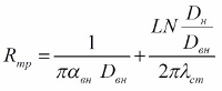 Приведенное термическое сопротивление стенок трубы Rтр, м2 · К/Вт, рассчитывается по формуле: